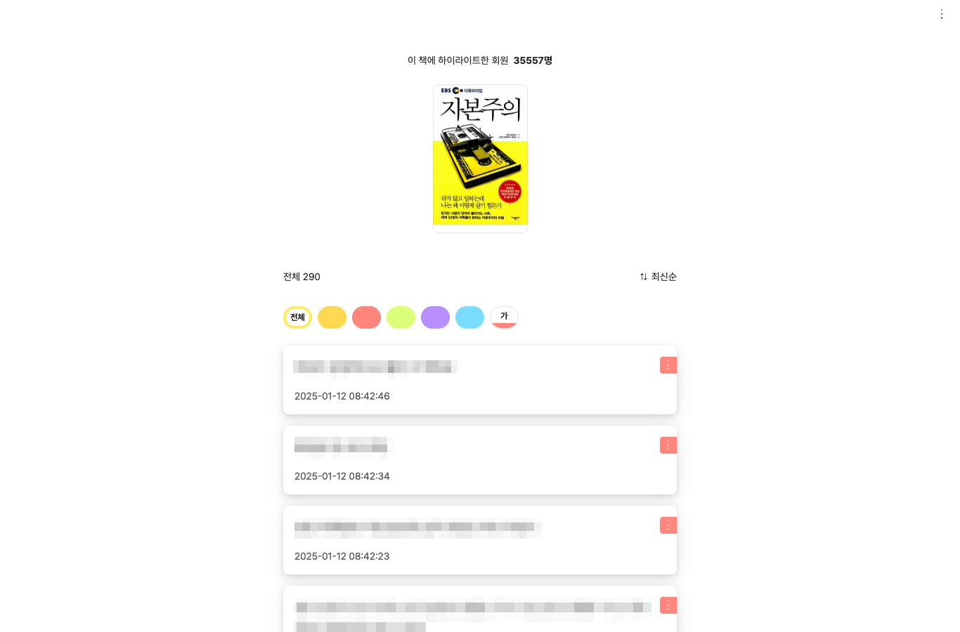 밑줄 친 하이라이트를 텍스트로 다운받아서 빠르게 정리하는 것입니다.