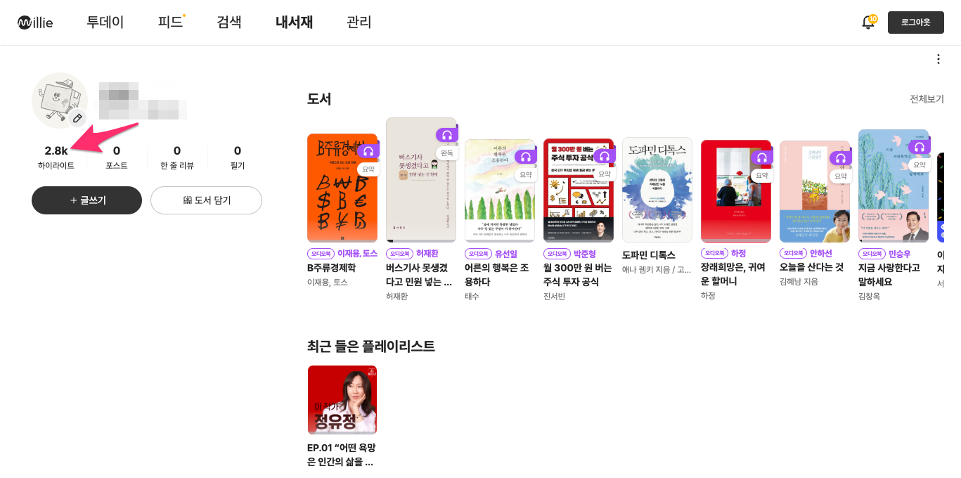 아이디 밑에 있는 하이라이트를 클릭합니다.