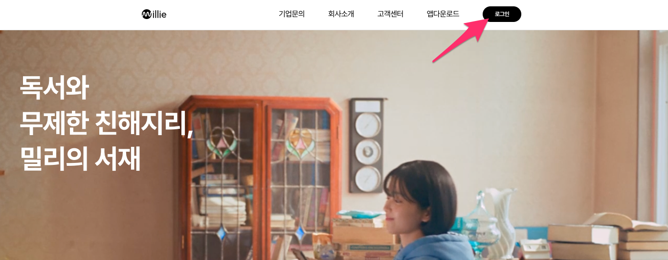 우선 밀리의 서재 홈페이지로 이동합니다.