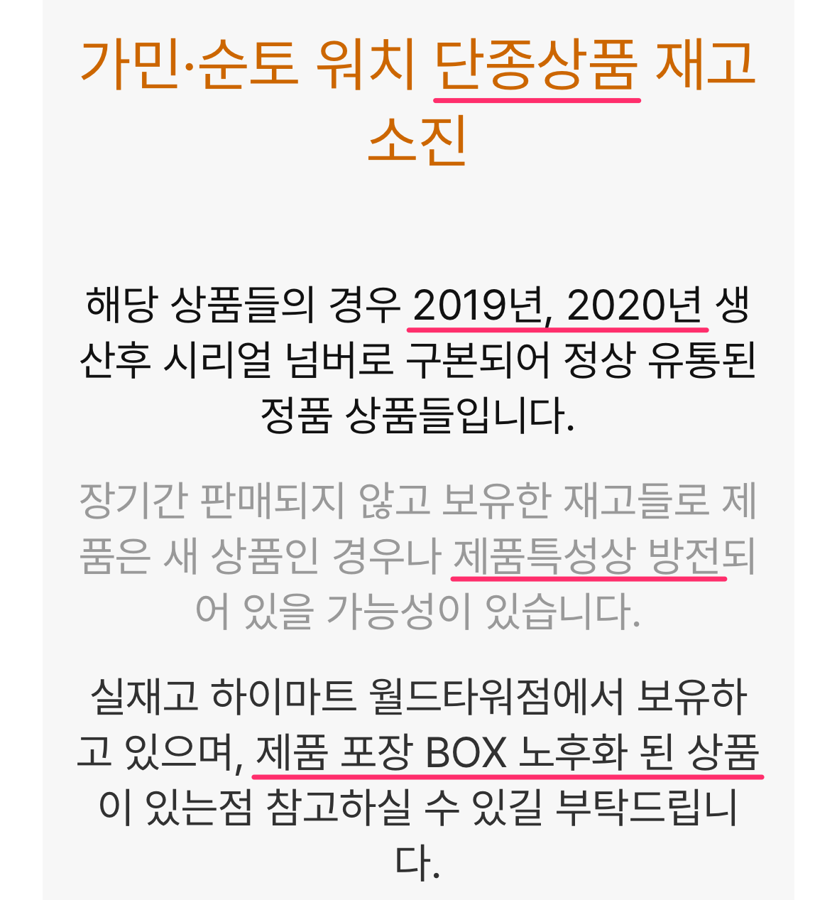 할인 이유를 보니 단종상품 재고라서 하네요. 오래전에 생산된 제품이기도 하고 방전 가능성도 있고 제품 포장도 노후화된 상품이라고 합니다. 뭐~ 이런 거쯤은 저한테 괜찮아서 구매결정(6월 6일)하게 되었습니다.