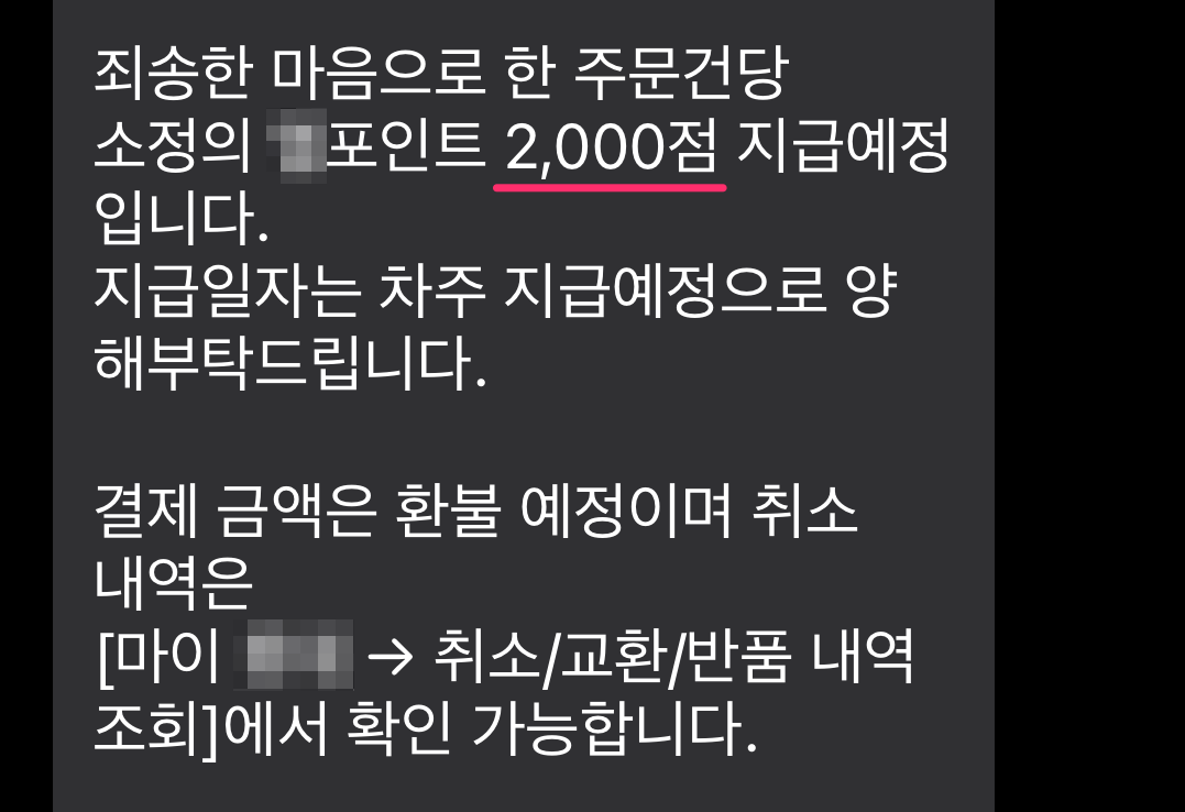 그러면서... 쇼핑몰에서는 포인트 2,000점 준다고 문자만 보내고...