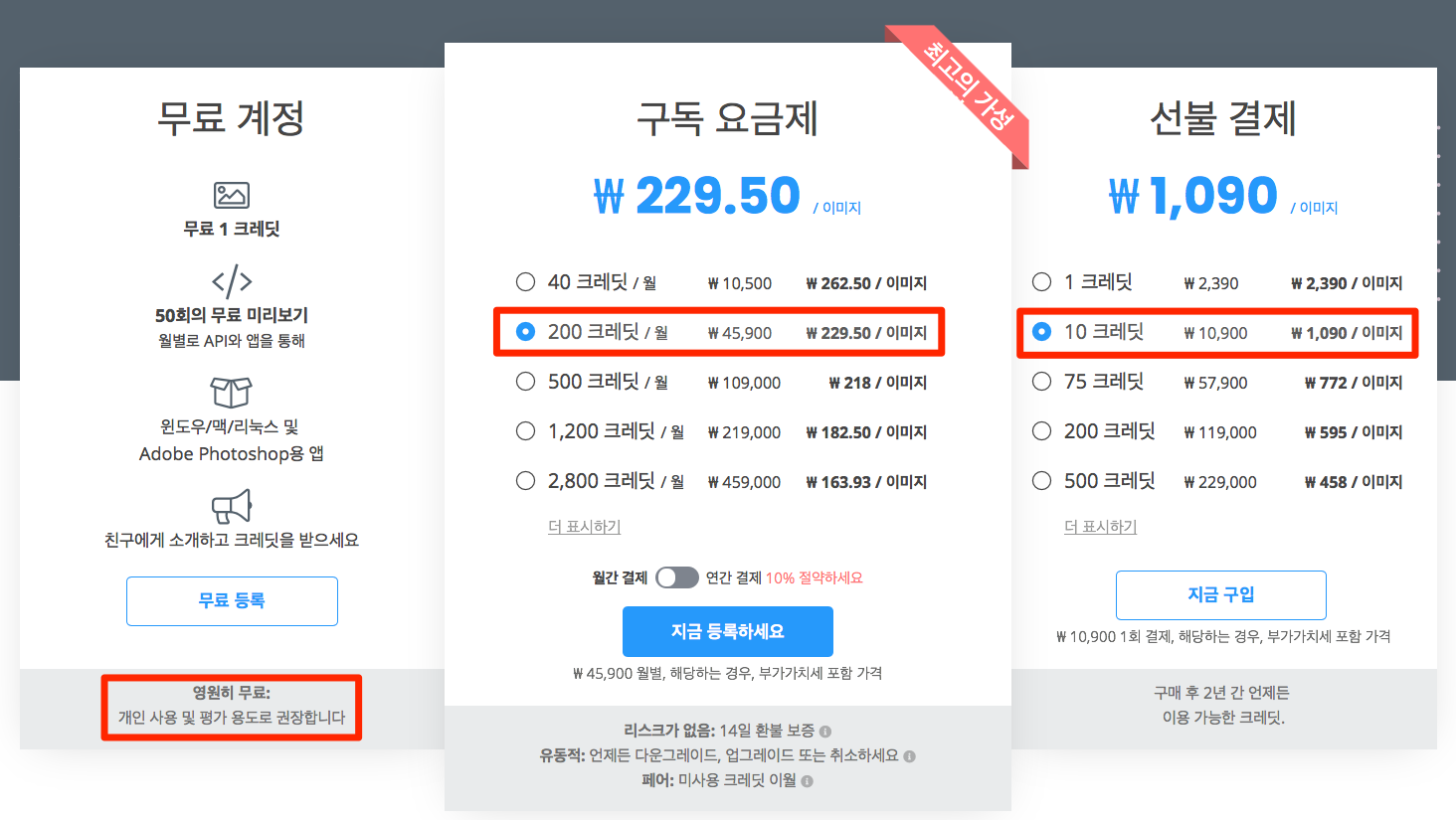 그래도 화질면이나 크기면에서 부족하다면 그때는 인쇄용으로 구독이나 선불로 결제하신 후에 고화질로 사용하시면 됩니다.