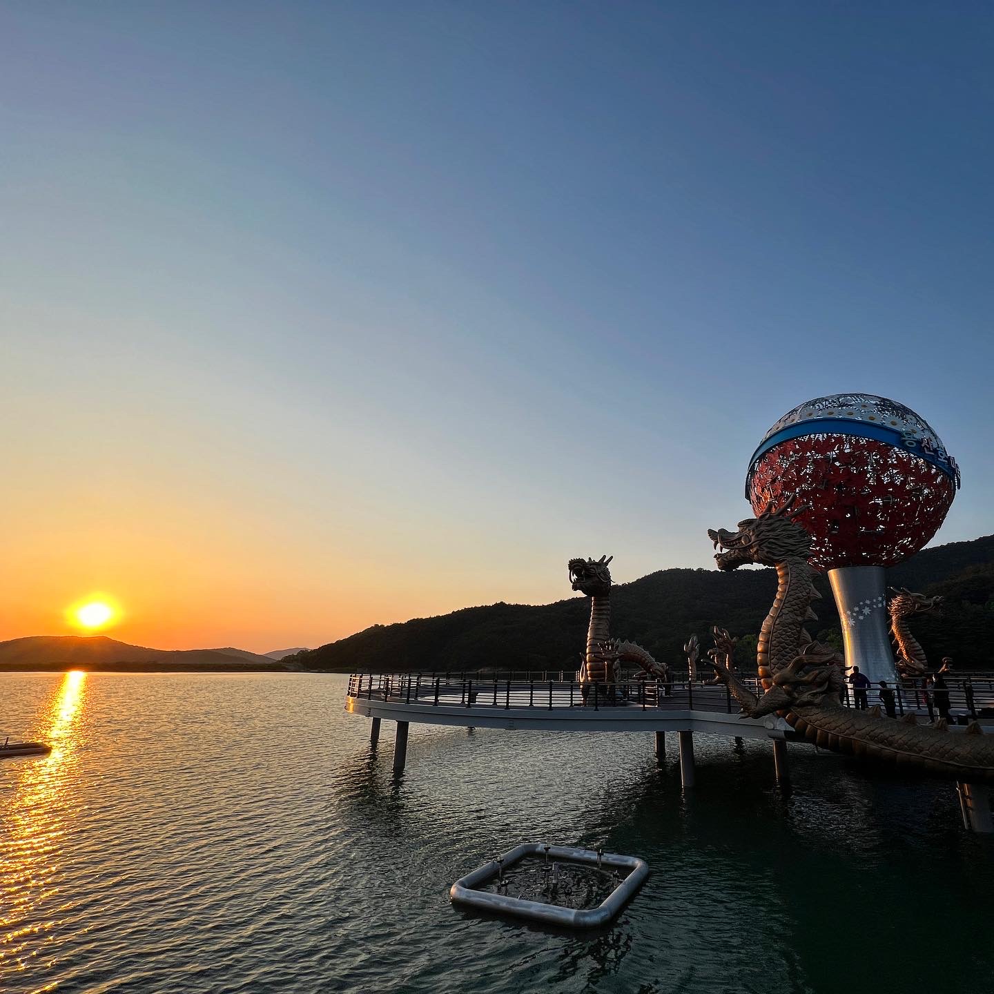 호수 가운데에는 다리가 있고 용 3마리도 있네요^^;