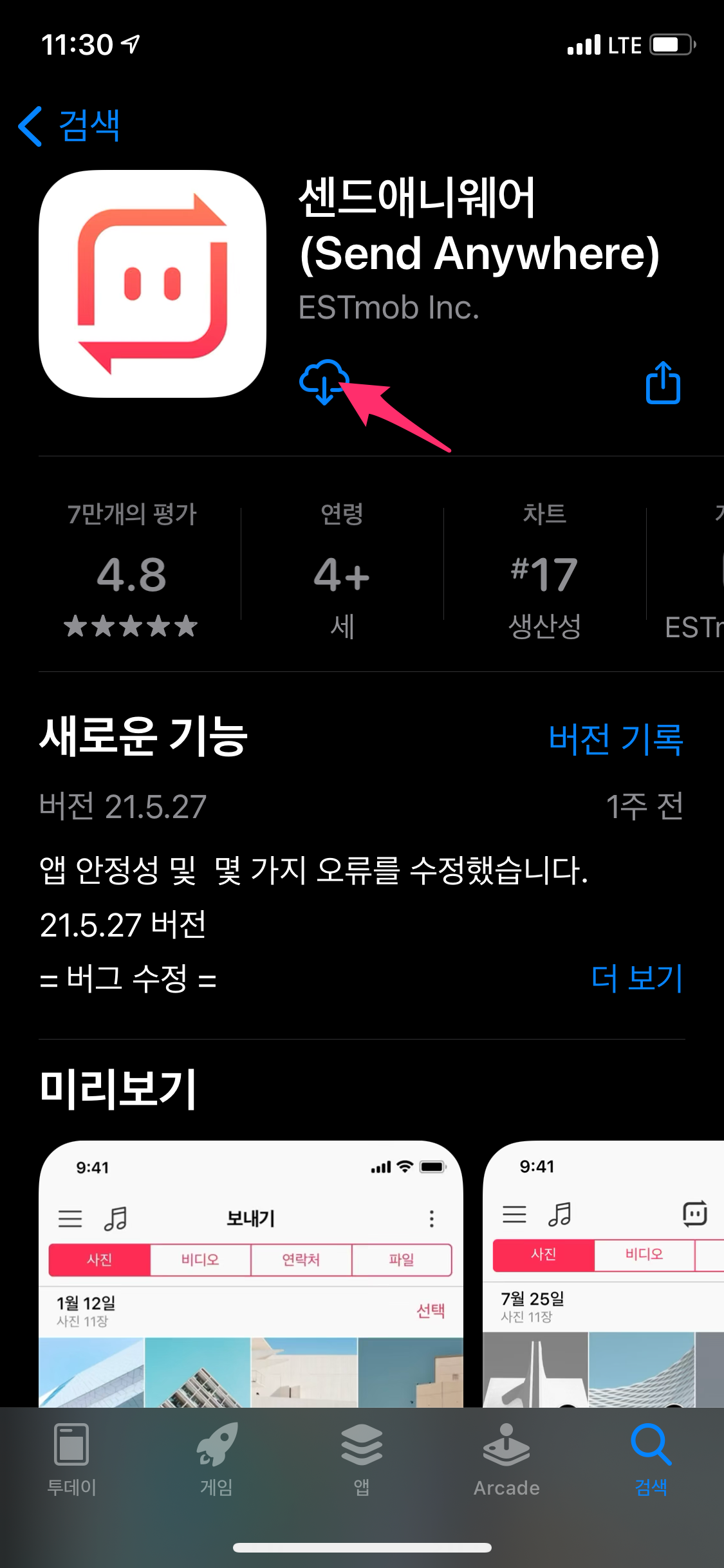 스마트폰에서 센드애니웨어 검색하여 설치합니다.
