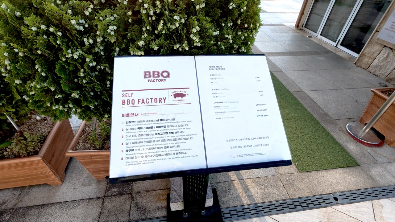 처음엔 이름만 보고 "야외에서 BBQ 치킨 먹는 곳인가?" 했는데, 알고 보니 직접 고기 구워 먹는 곳이더라고요!