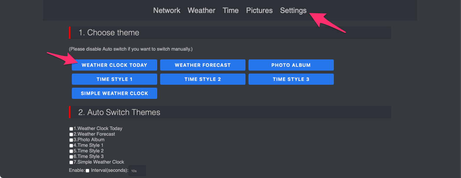 원하는 테마를 체크하고 Interval도 체크한 후에 시간(초 단위)을 입력하면 됩니다.