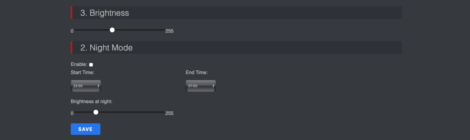 그리고 밝기(Brightness)와 야간 모드(Night Mode)도 원하시면 설정하세요.