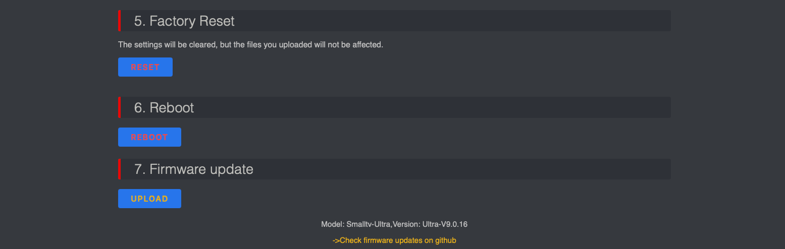 또한 공장 초기화(Factory Reset), 재부팅(Reboot), 팜웨어 업데이트(Firmware update)가 있습니다.