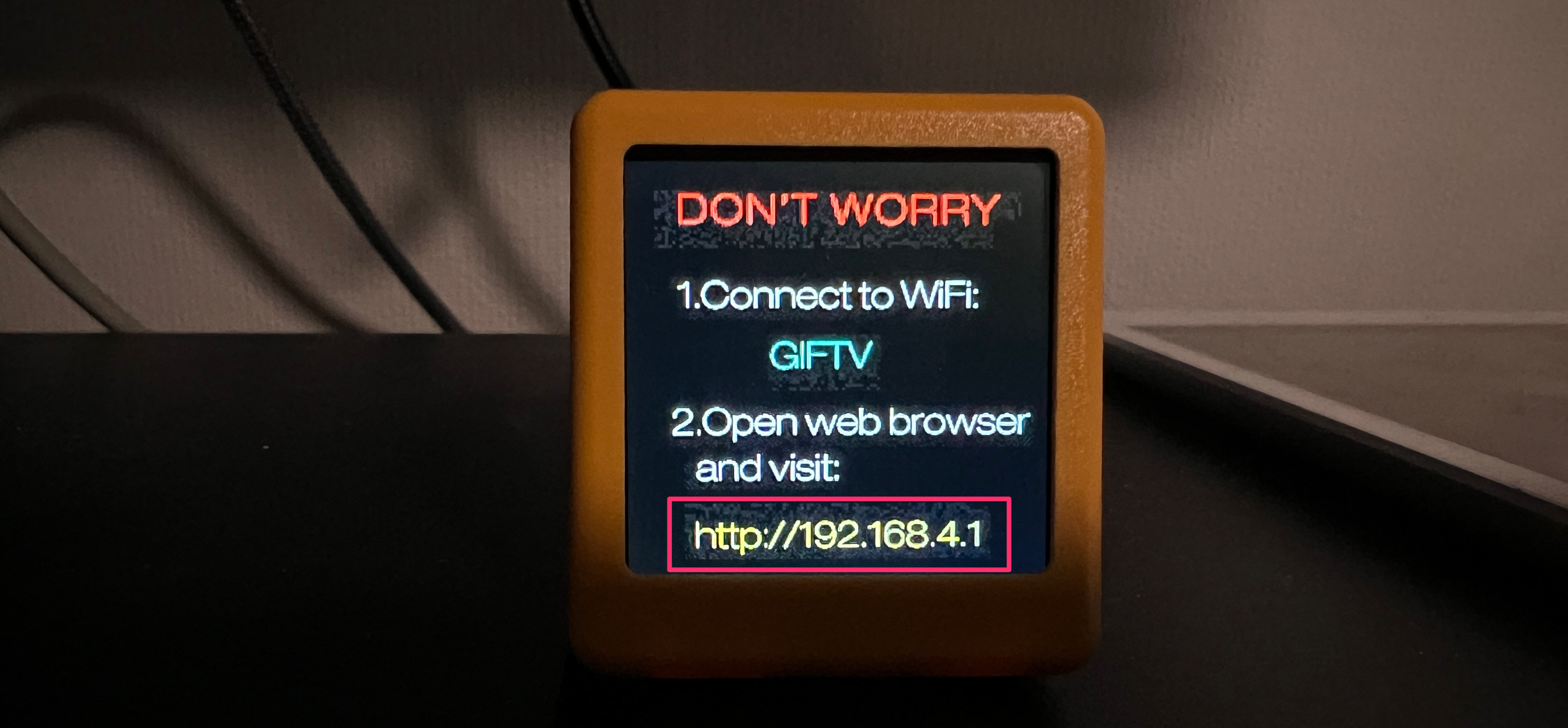 전원을 연결하면 WiFi 이름(GIFTY)과 웹 주소가 보입니다.
