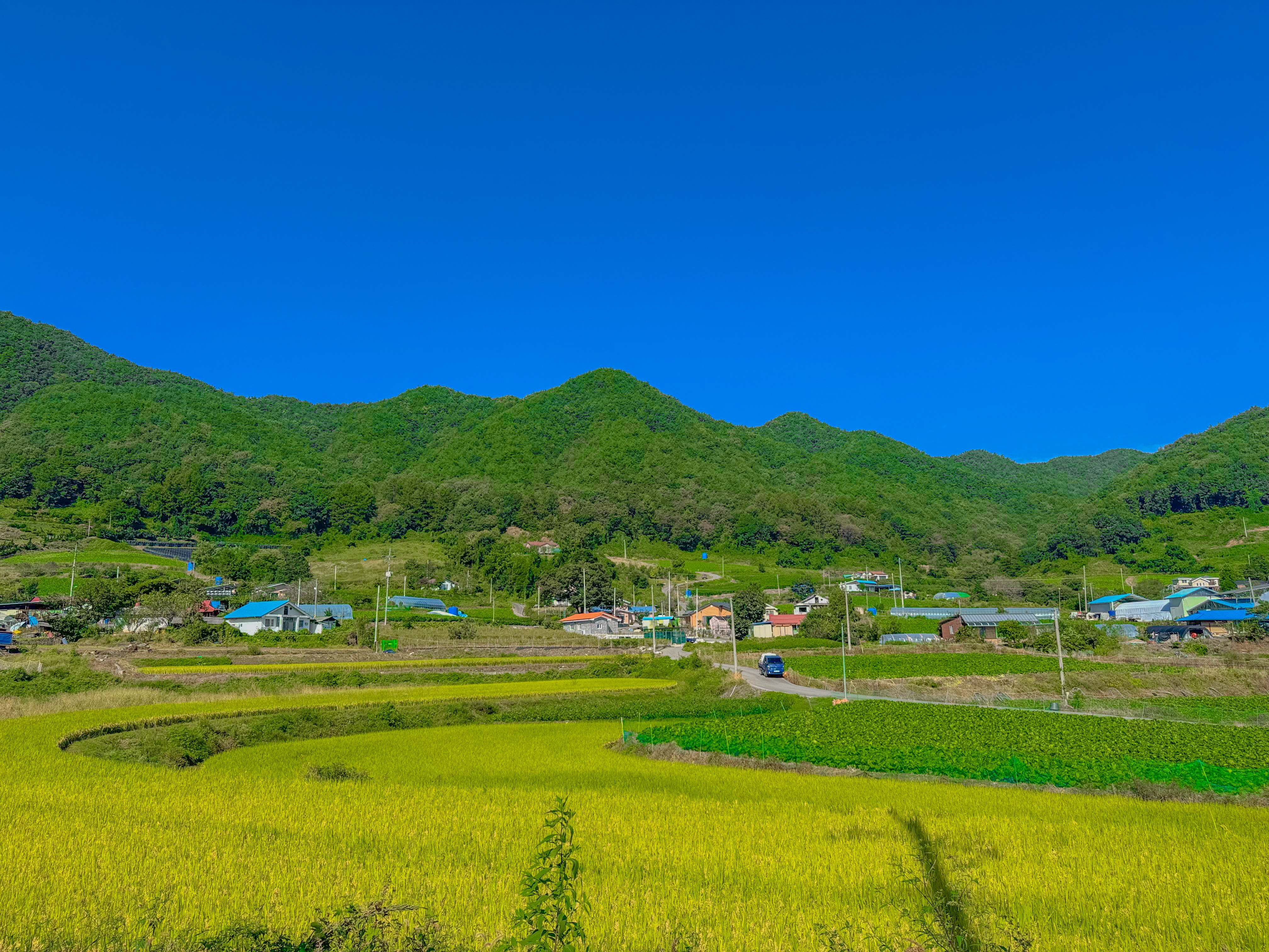 7시에 일어나서 부랴부랴 준비하고 9시 반쯤 대티리마을 입구에 도착했어요. 그런데 주차장이라고 할 게 없고 그냥 갓길에 주차해야 하더라고요. 다행히 차가 별로 없어서 6명이 타고 온 차 2대 정도는 댈 수 있었어요. 주말인데도 생각보다 한산했어요.
