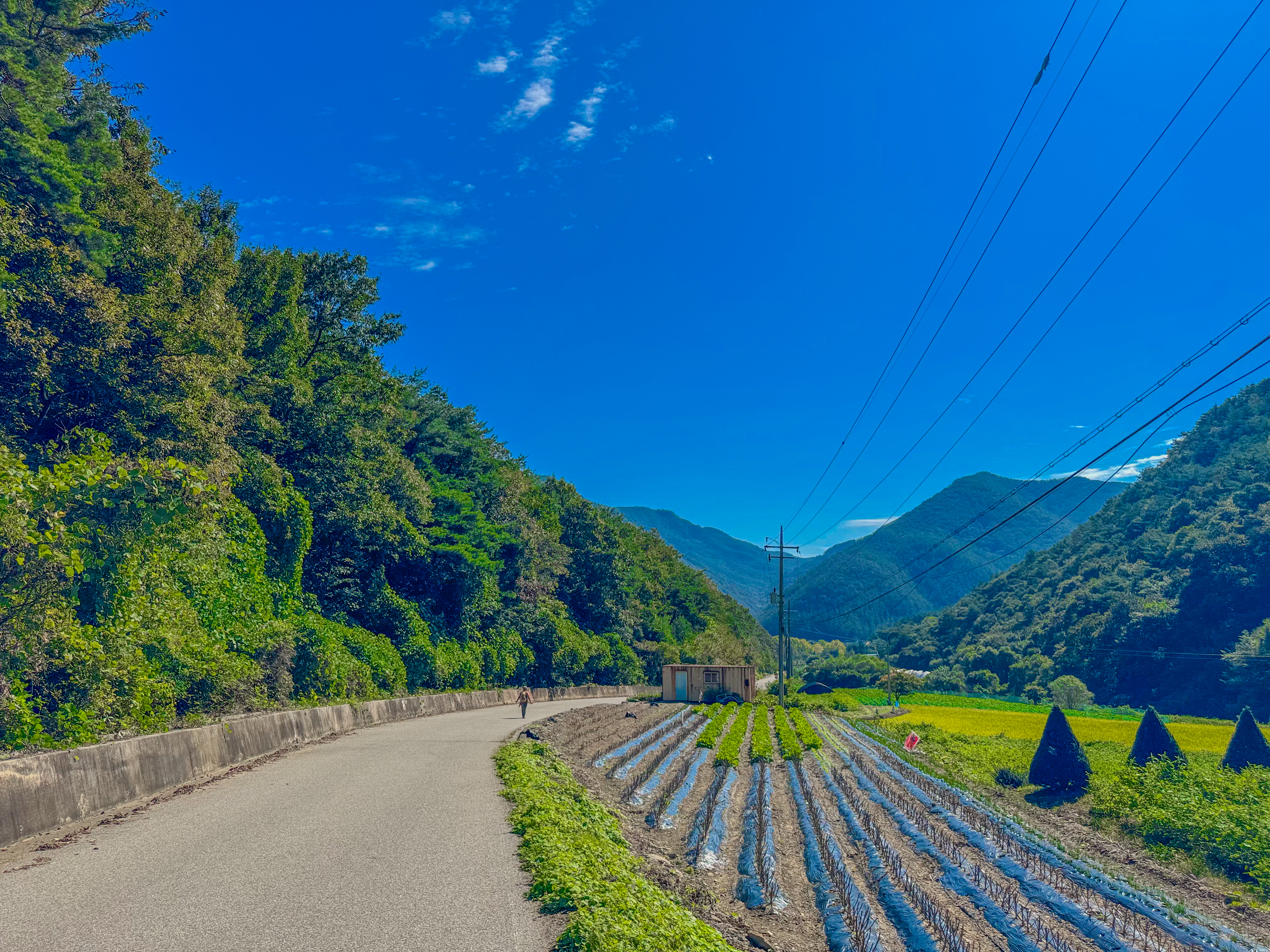산길에서는 울창한 숲 속을 걸으며 자연을 만끽하고, 차길에서는 탁 트인 들판과 산들을 바라보며 걸을 수 있어서... 뭔가 두 가지 매력을 다 느낄 수 있는 코스였어요. 다만 차길에서는 가끔 차가 지나가니까 조심해야 해요.