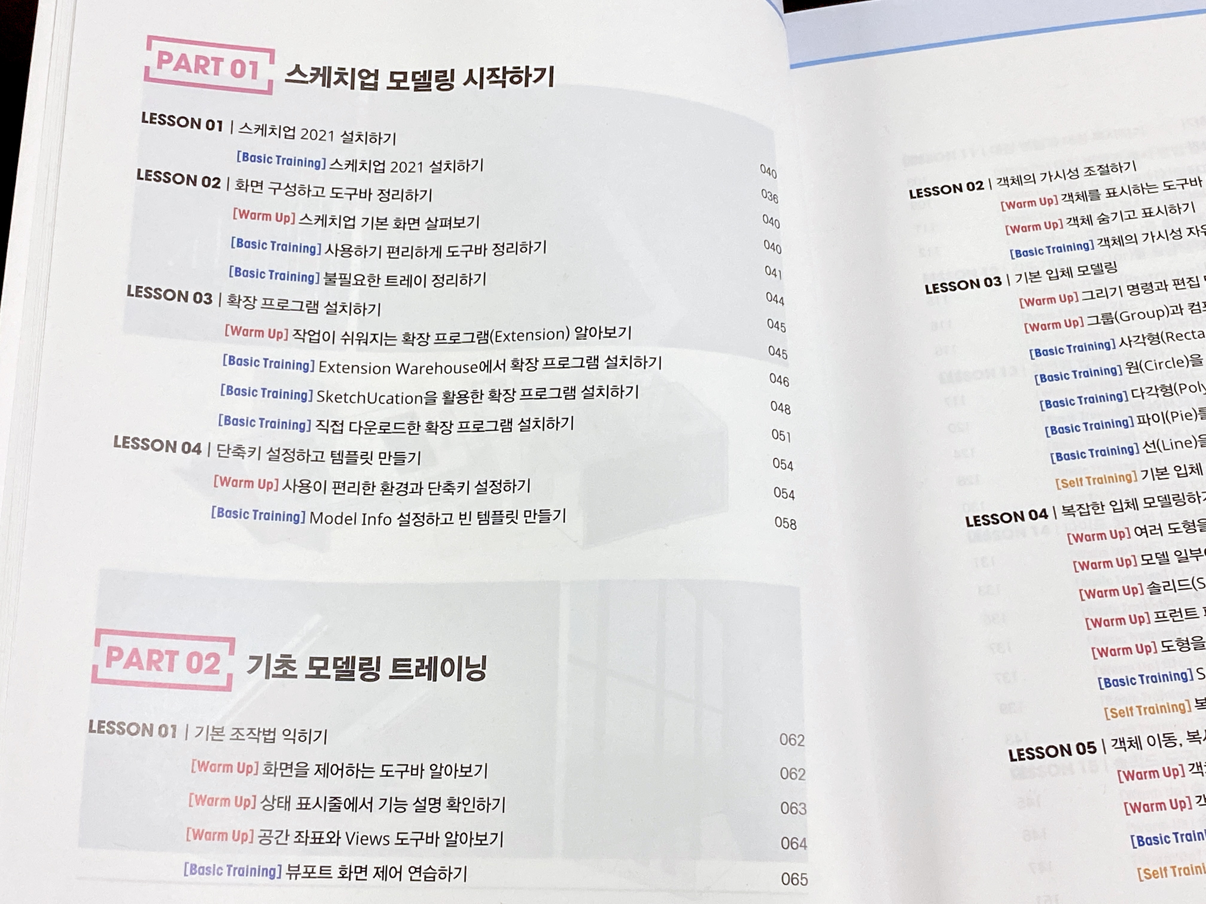 전체적인 구성은 도서의 제목처럼 크게 스케치업 모델링과 V-RAY로 나누어 구성되었습니다.