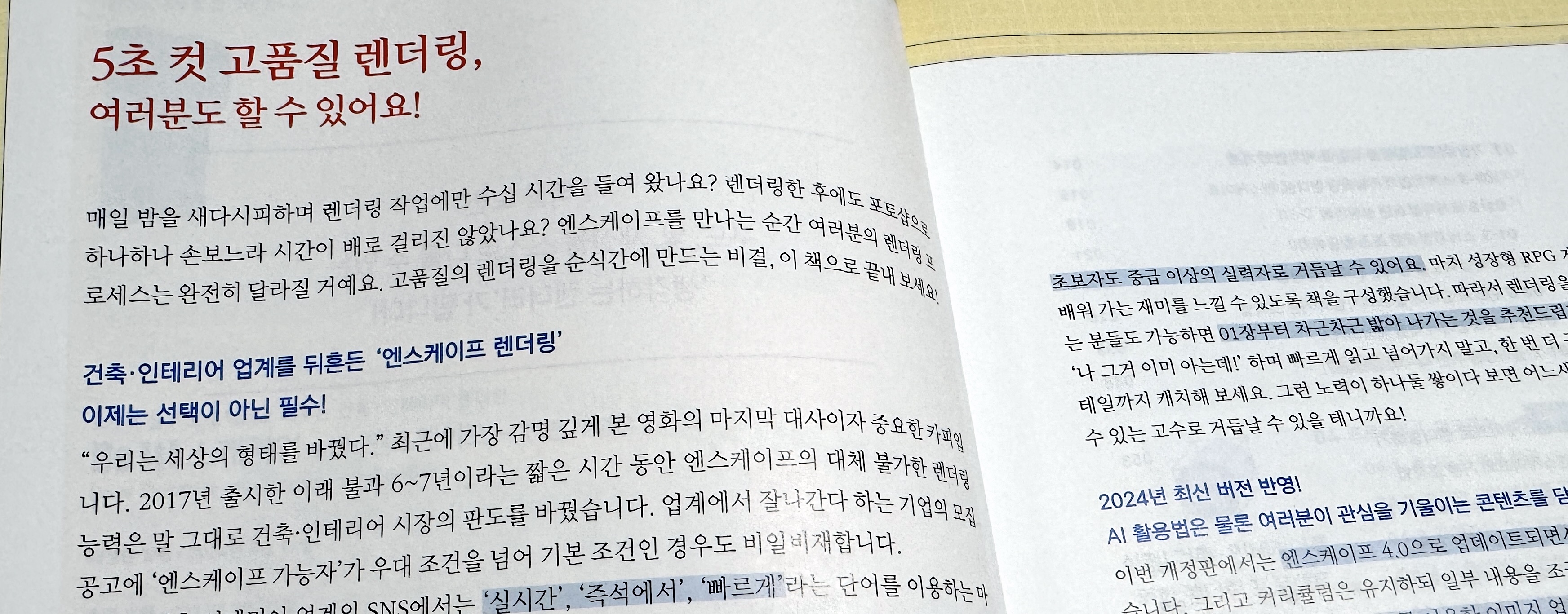 그러다가 스케치업 관련 도서를 찾던 중에 "3시간 걸리던 고품질 투시도, 5초 만에 완성!"이라는 문구를 보고~ 뭐지? 했습니다.