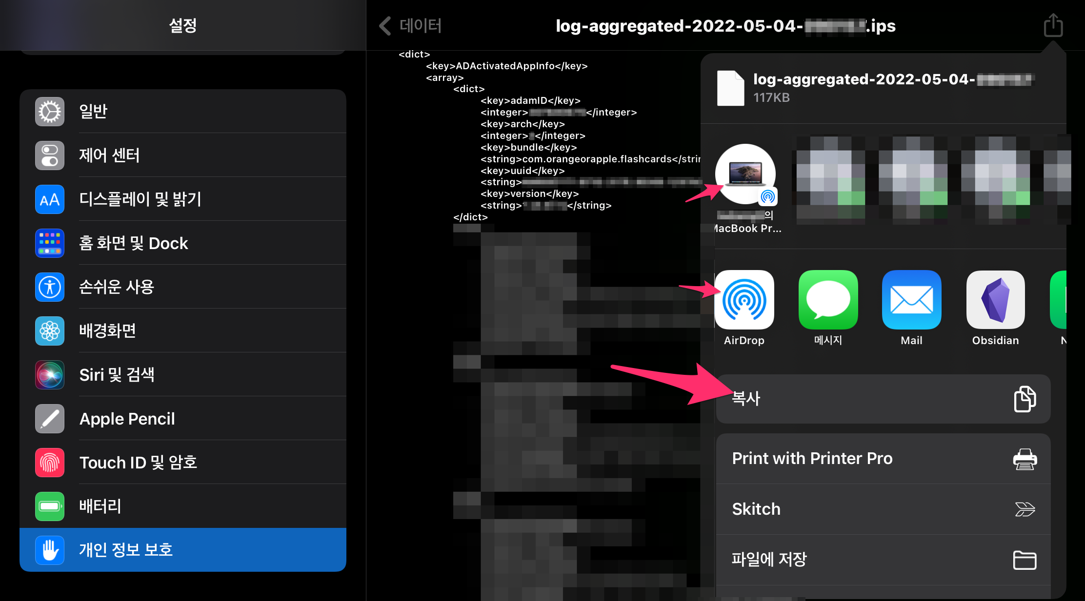 분석 및 향상에서 iPad 분석 공유는 꼭 체크되어 있어야 합니다.