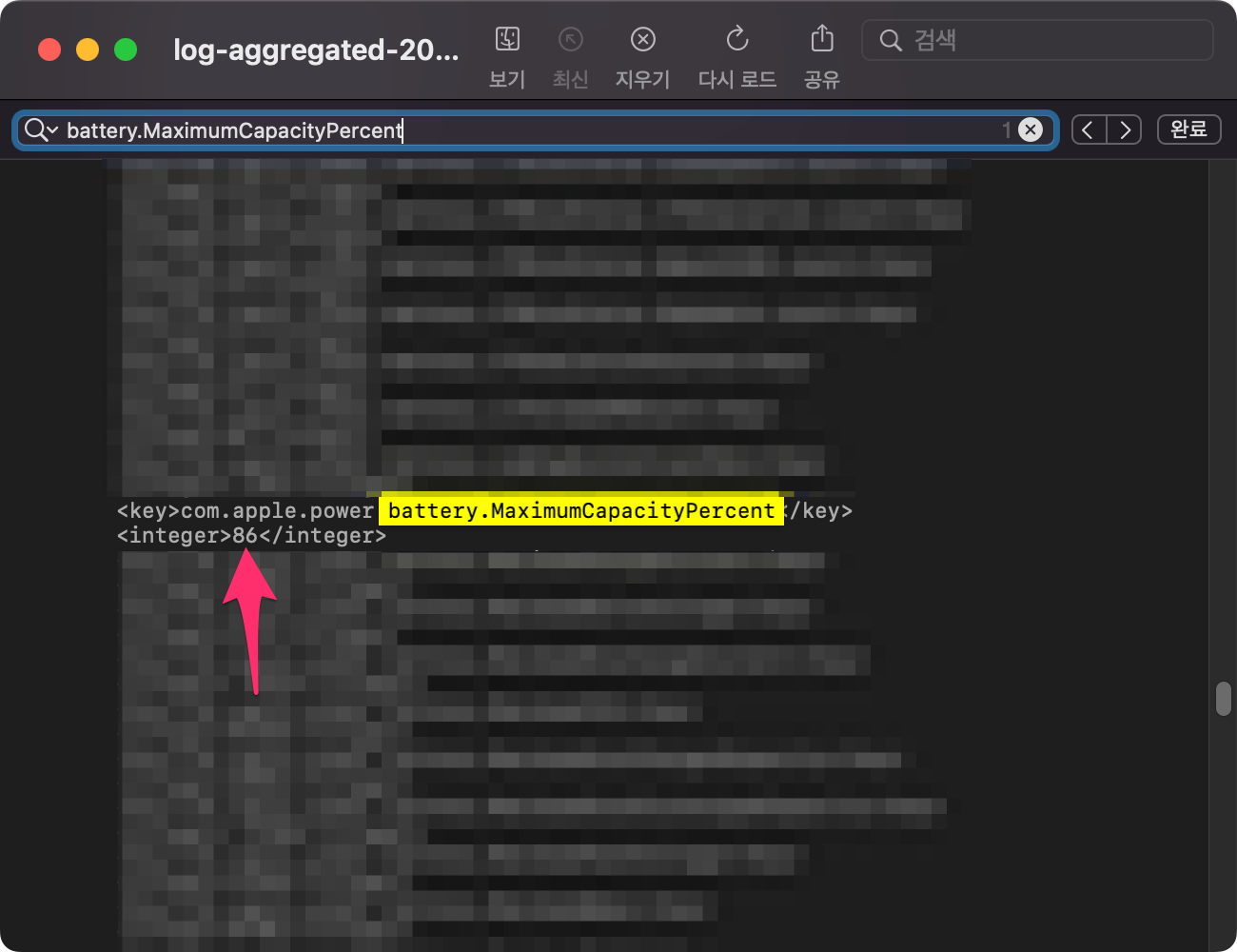 마찬가지로 검색을 이용해서 battery.MaximumCapacityPercent 문구를 검색하시면 아래 배터리 성능 최대치 퍼센트를 확인할 수 있습니다.