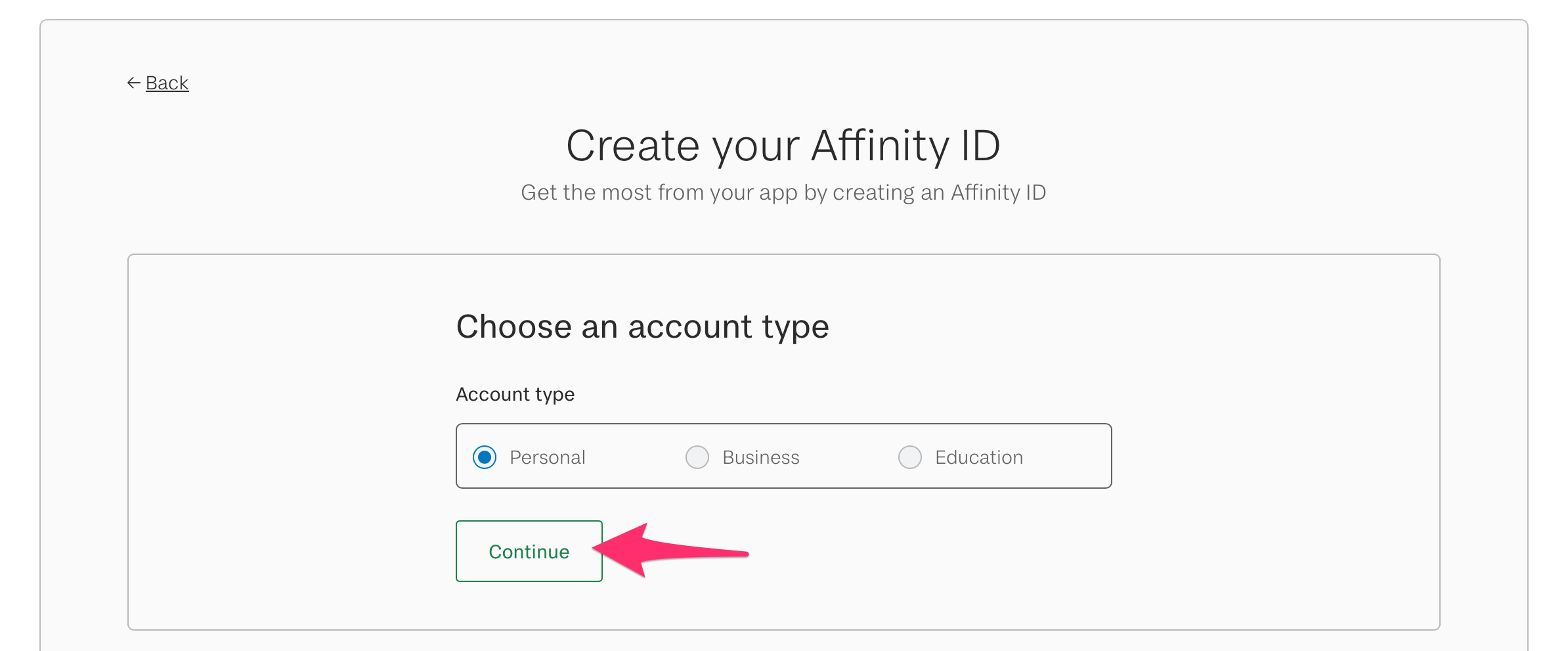 계정 타입은 개인(Personal)로 선택 후 Continue 하고 암호를 입력합니다.