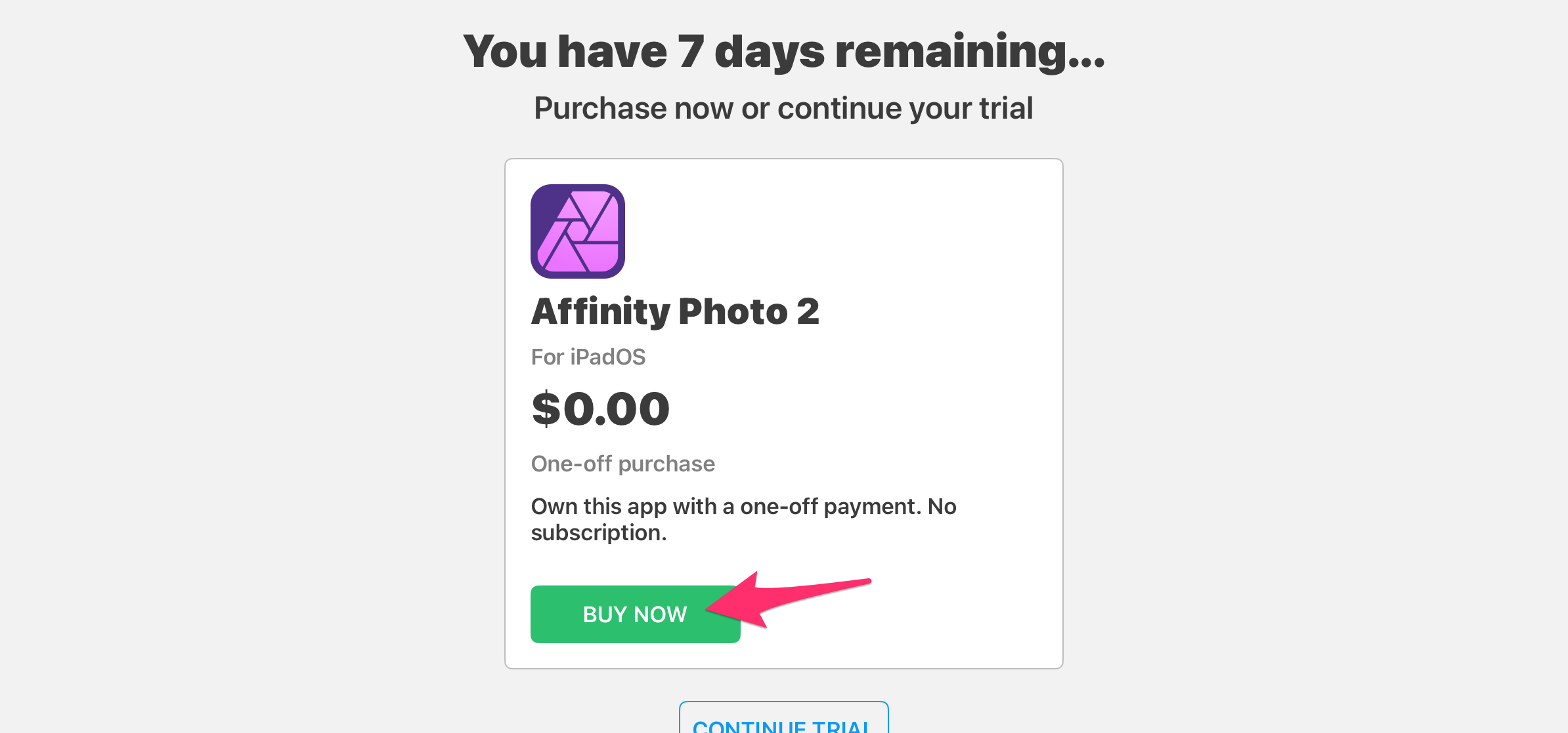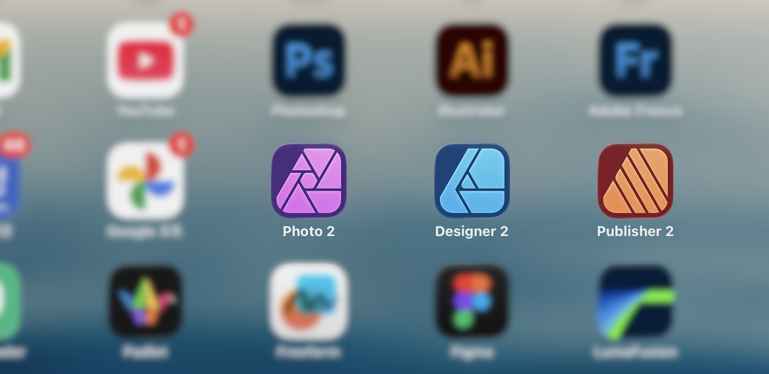 앱스토어에서 Affinity Photo 2, Designer 2, Publisher 2를 설치하세요.