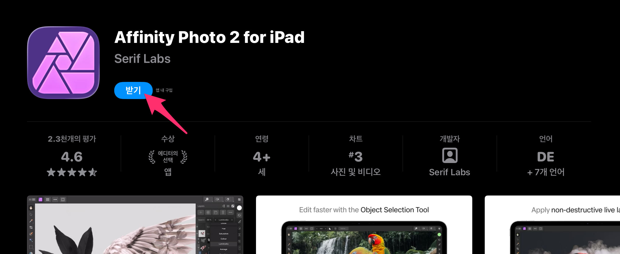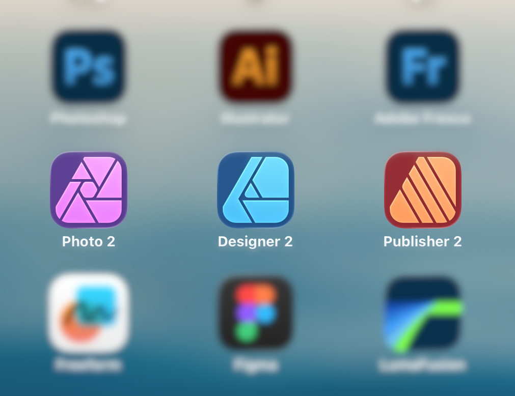 앱스토어에서 Affinity Photo 2, Designer 2, Publisher 2를 설치하세요.
