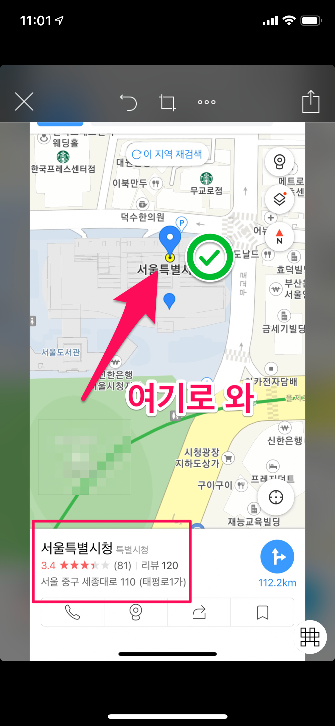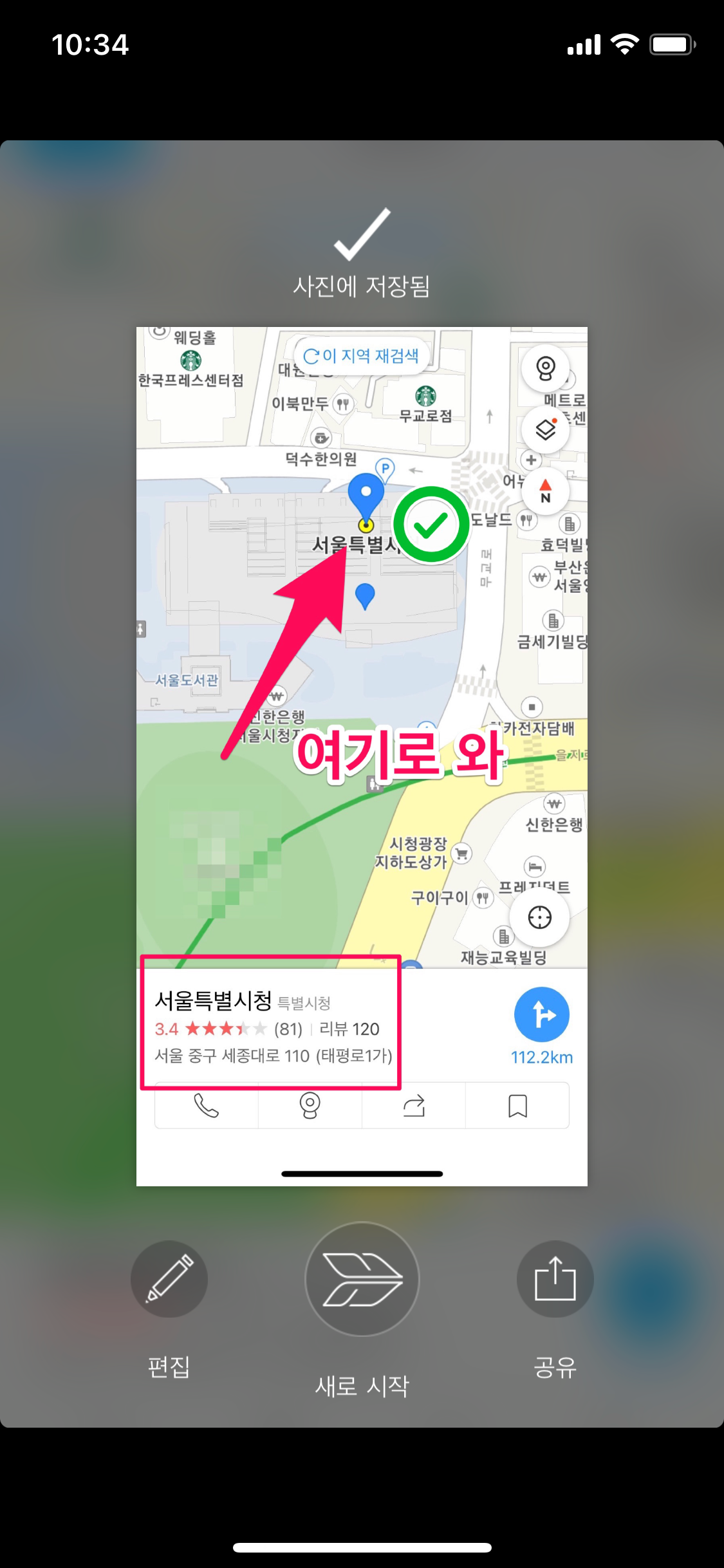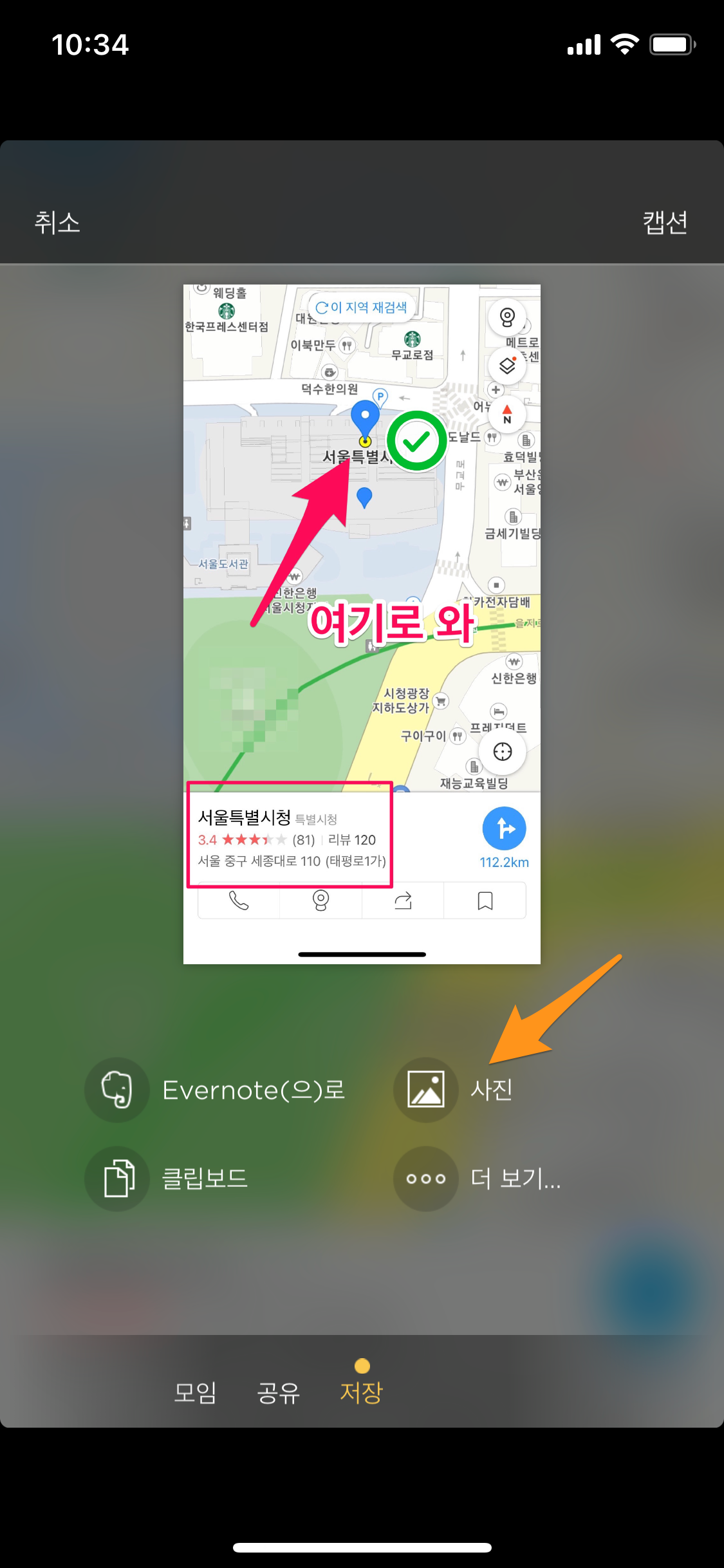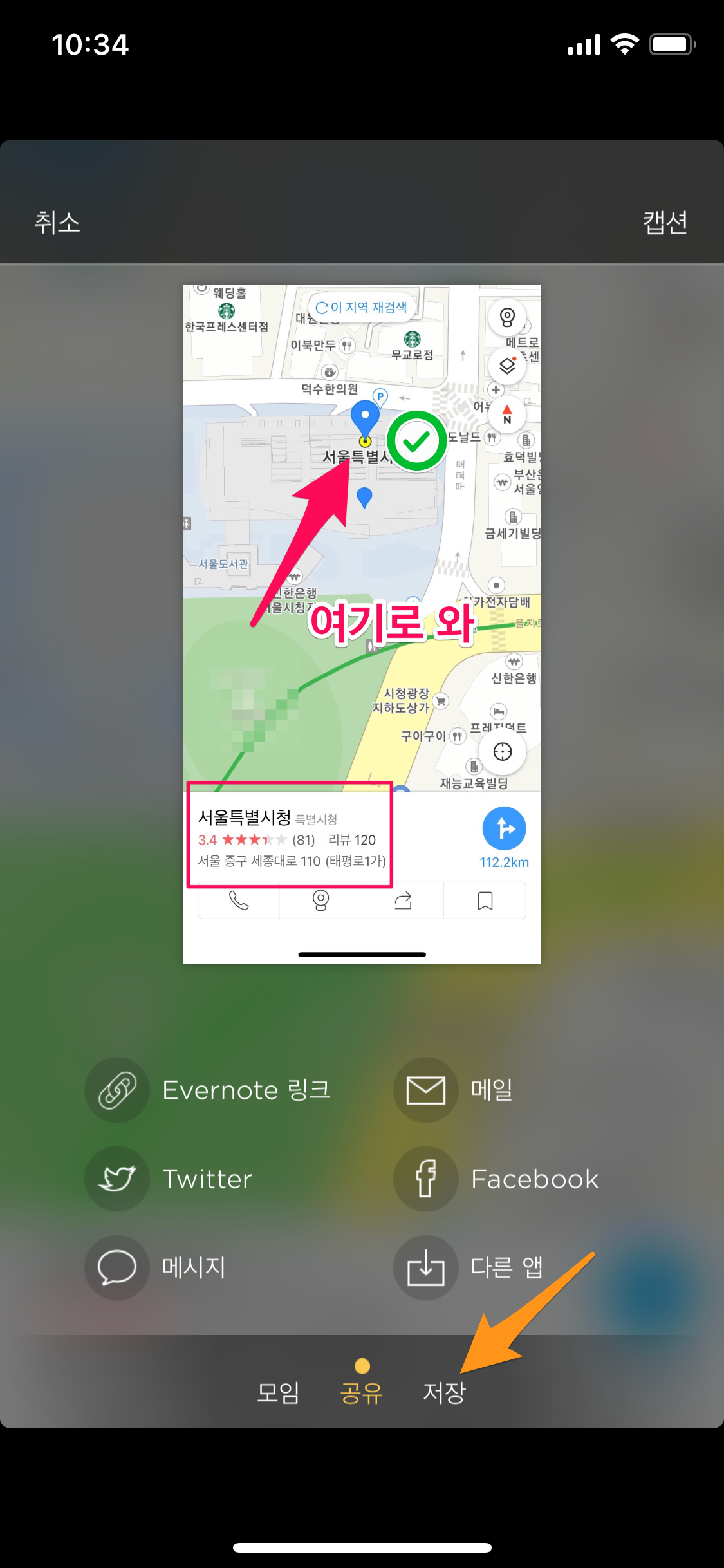 그런 다음에 친구에게 자신의 위치 이미지를 보내시면 됩니다.^^;