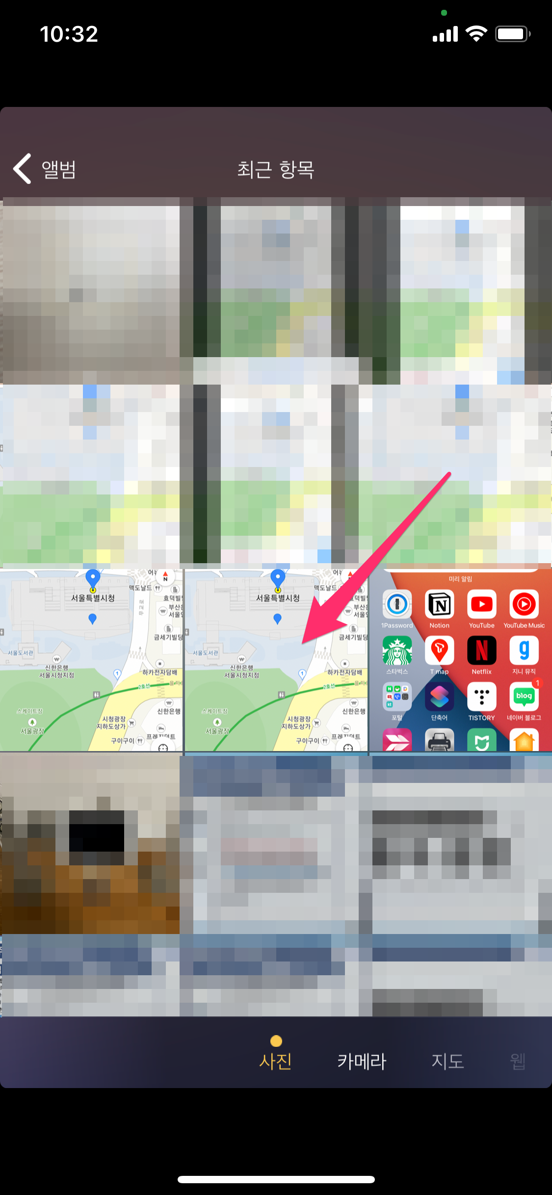 하단에 [사진]을 선택한 후에 앨범에서 캡처한 사진을 선택합니다.