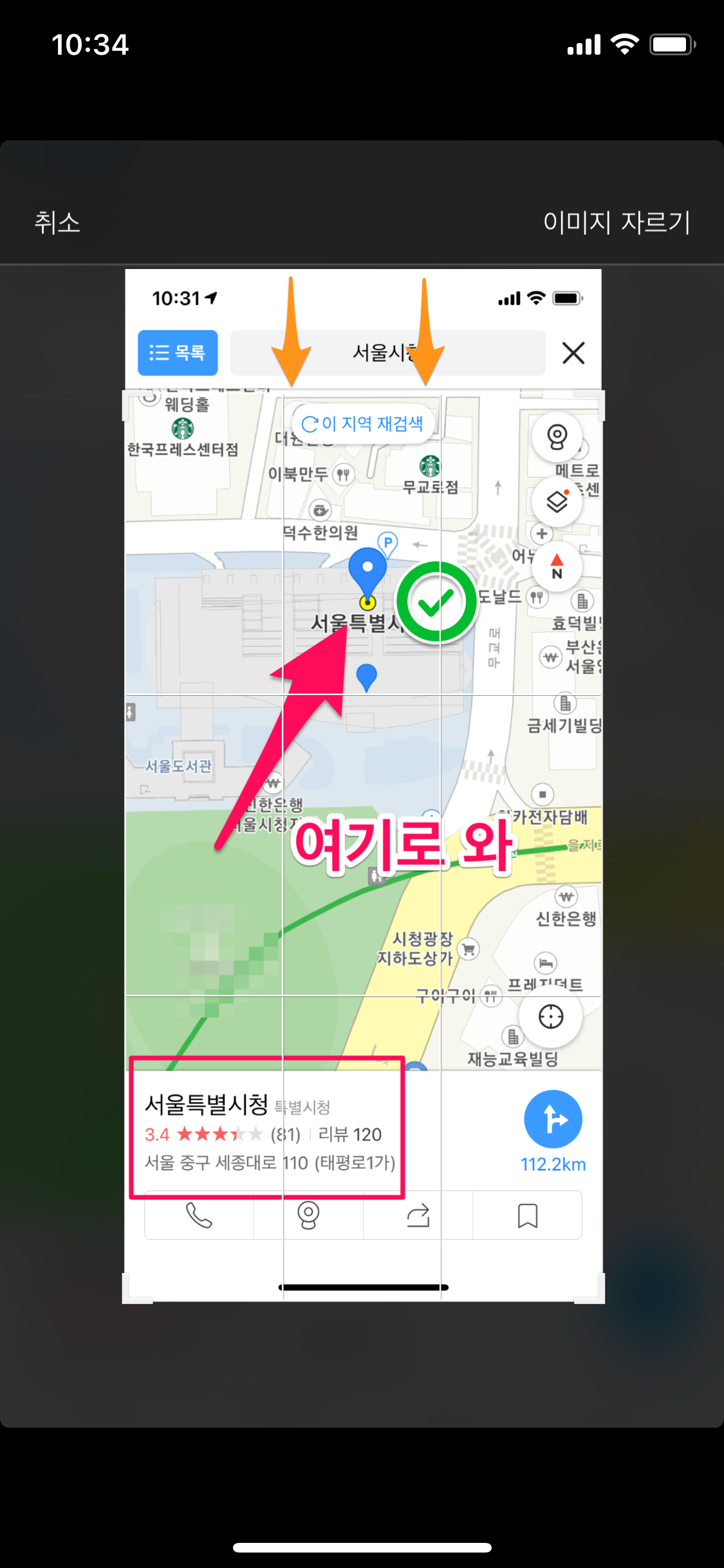 예제는 제가 있는 위치를 지도 화면 캡처하여서 표식한 후에 이미지로 만드는 과정입니다.