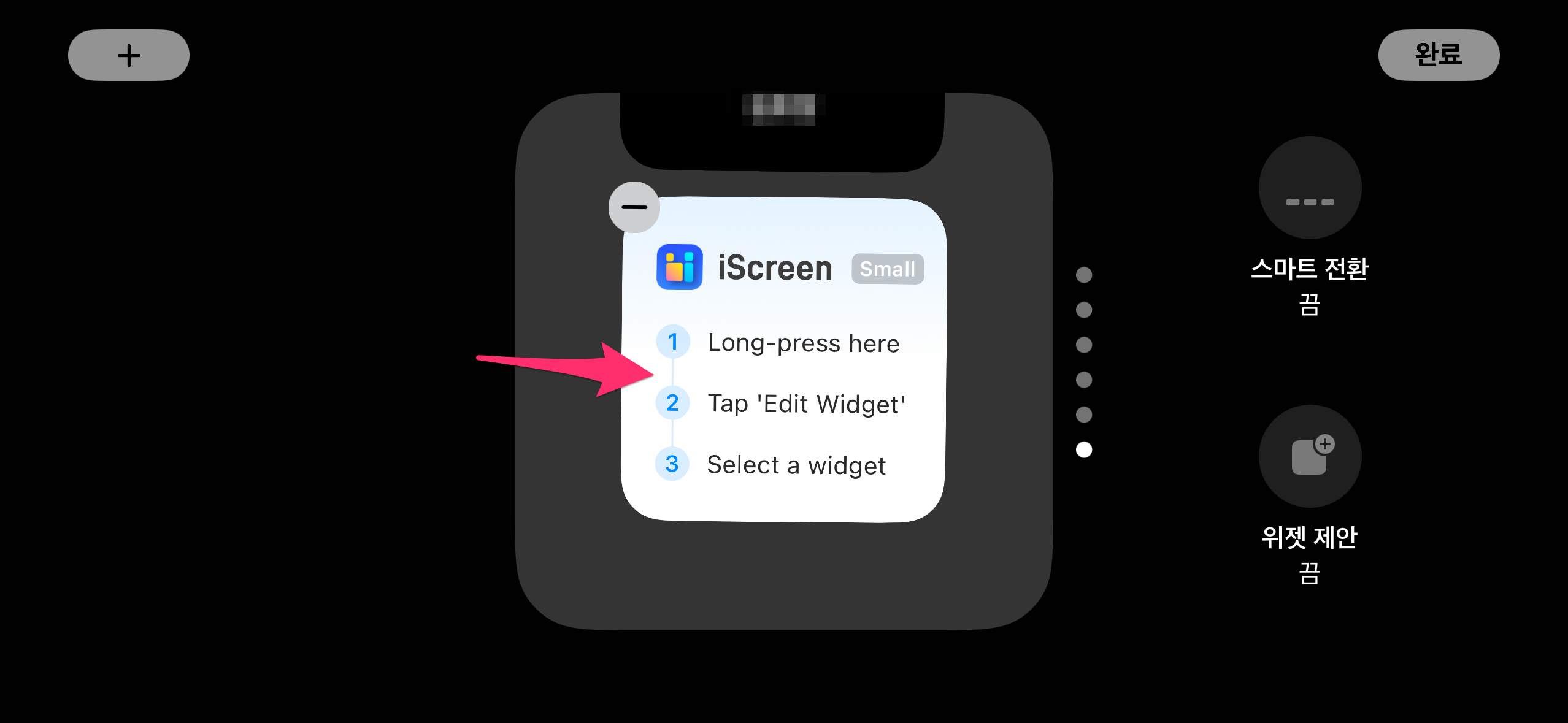 변경된 위젯을 확인한 후에 오른쪽 상단 완료 버튼을 터치합니다.