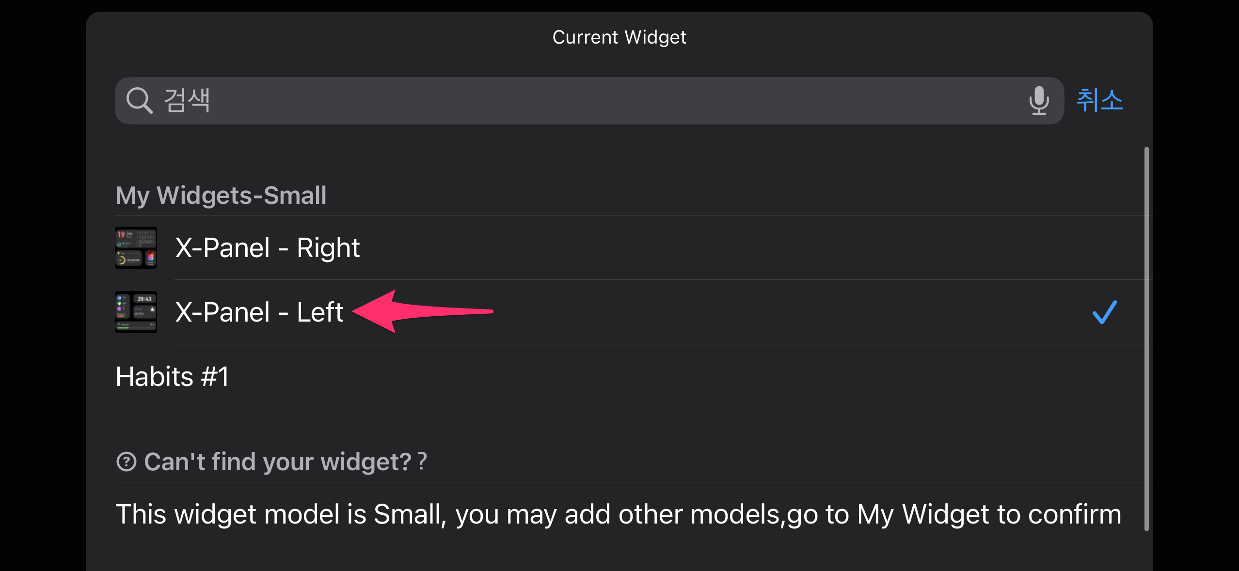 왼쪽 위젯을 변경하고 있기에 X-Panel - Left를 선택합니다.