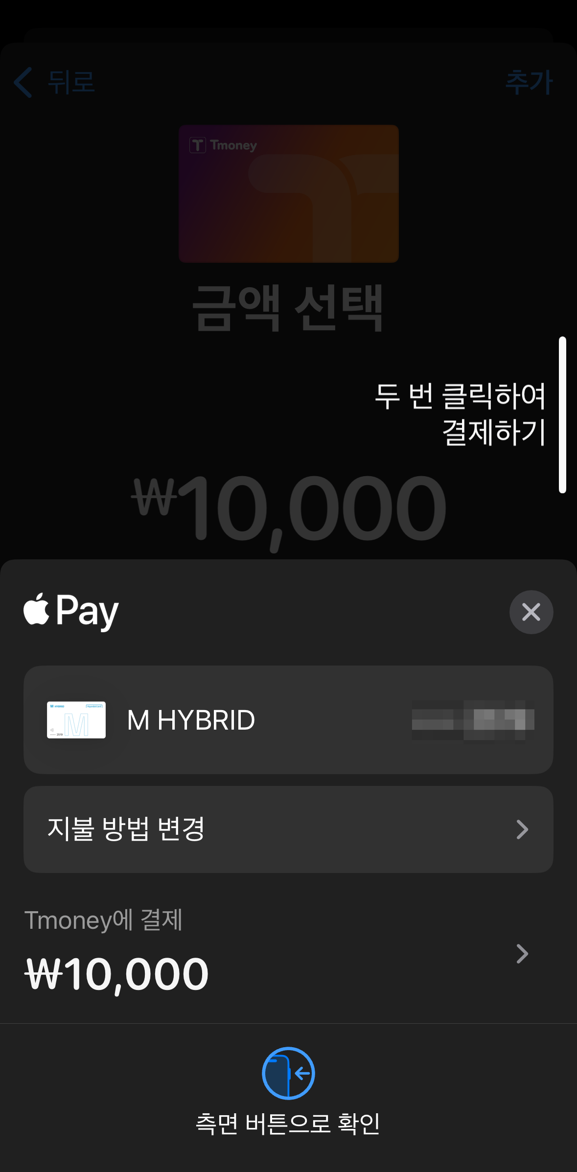 그리고 결제는 충전식이고 애플페이와 현대카드로만 할 수 있습니다.