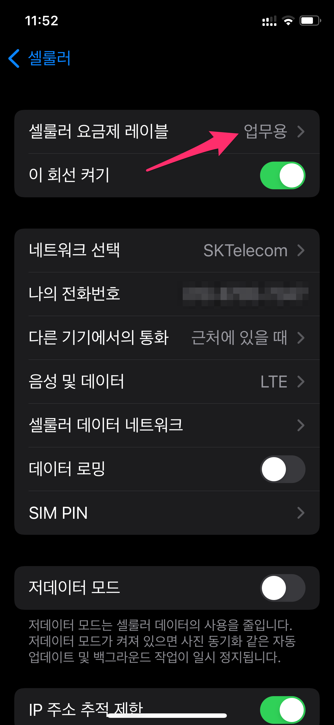 아이폰 [설정] - [셀룰러]에서 추가된 번호를 선택합니다.