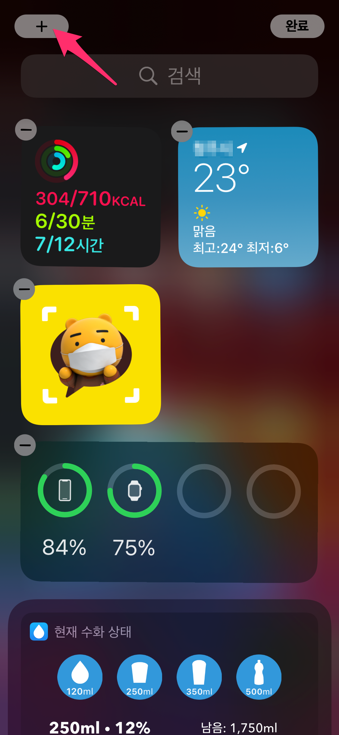 혹시나 위젯 목록보다 아이폰 화면에 위젯을 선택하고 싶으시면 원하는 위치에 이동 가능합니다.