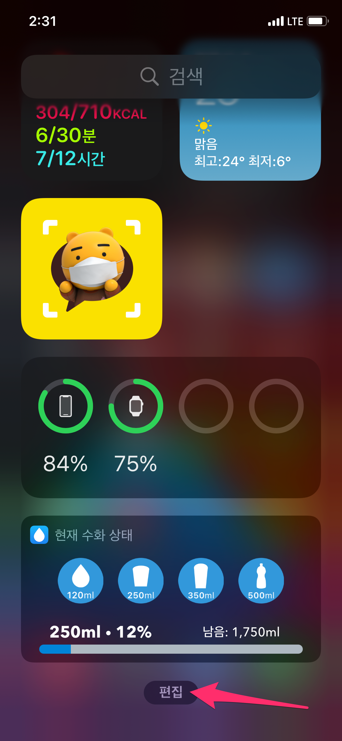 위젯 목록 하단에 있는 편집을 선택합니다.