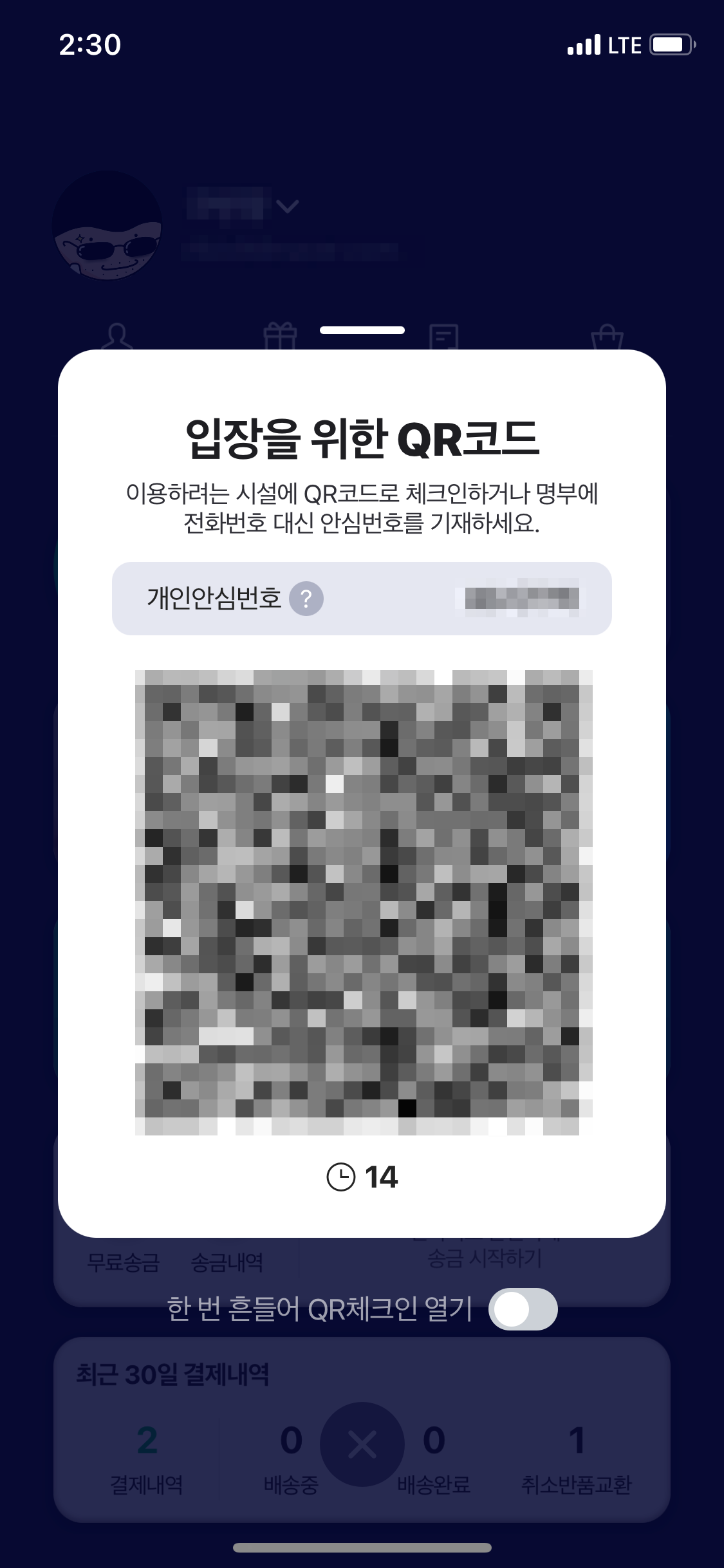 Na. 서비스가 보이고 QR 체크인을 선택하면 입장을 위한 QR코드 화면이 나옵니다.
