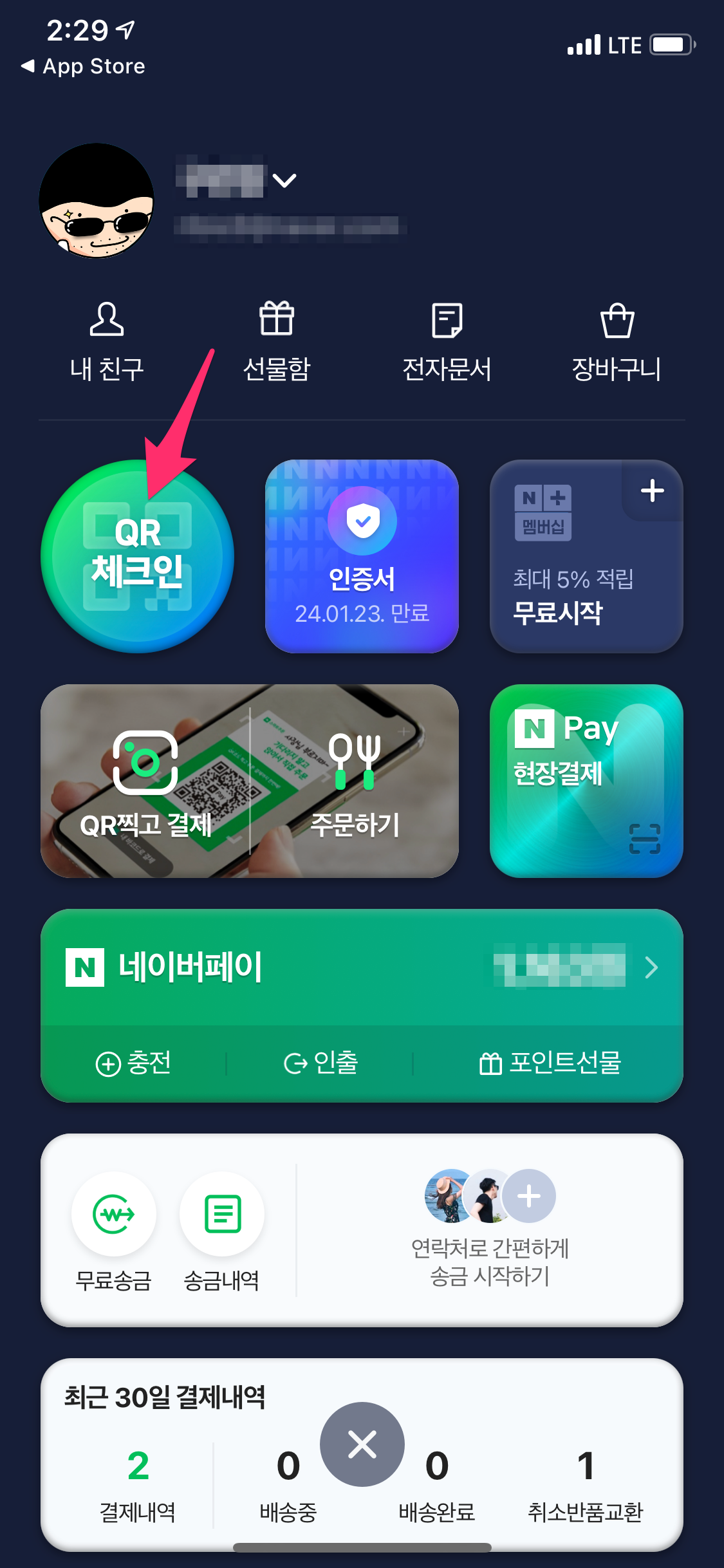 1. 네이버 앱에서 QR 체크인