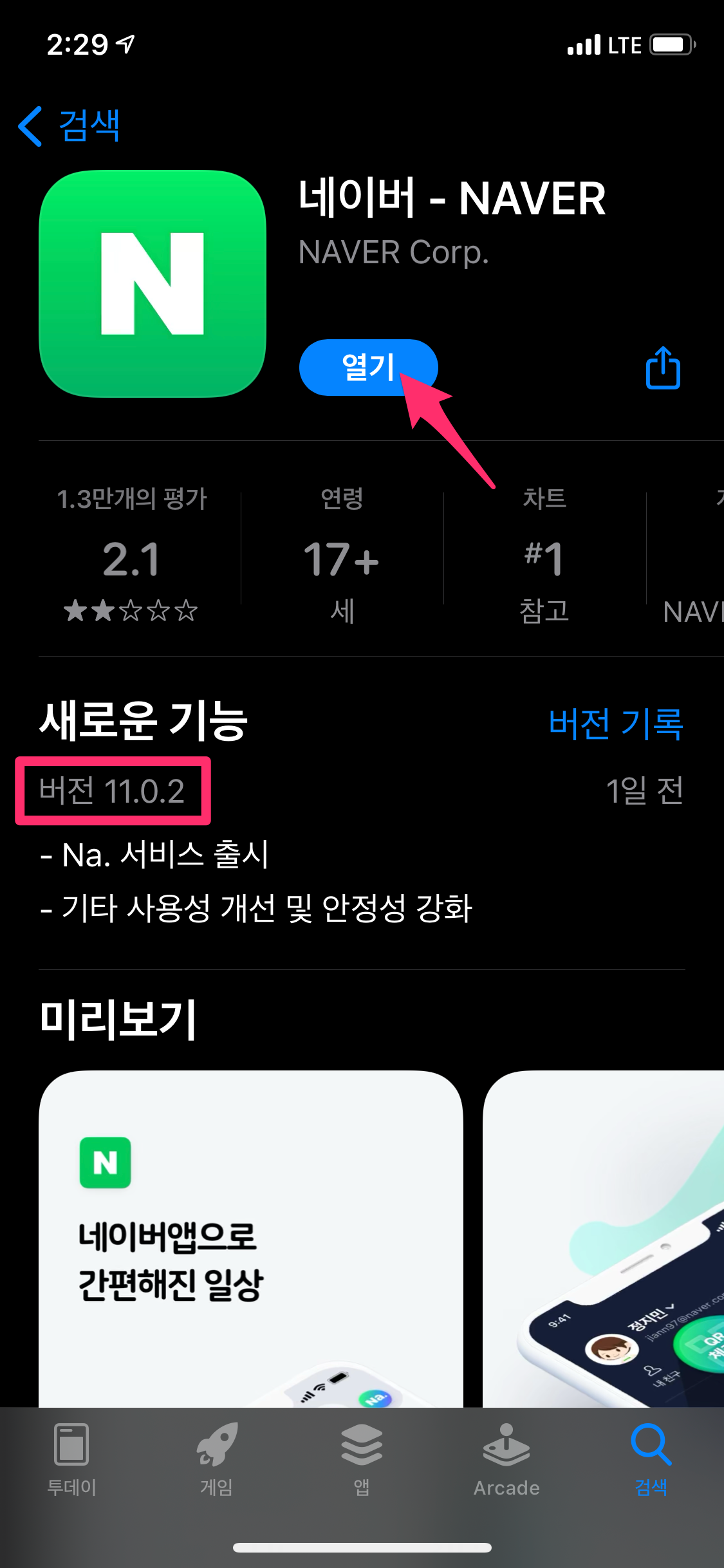 우선 아이폰에서 네이버 앱 버전이 최신으로 꼭~ 설치되어야 합니다.