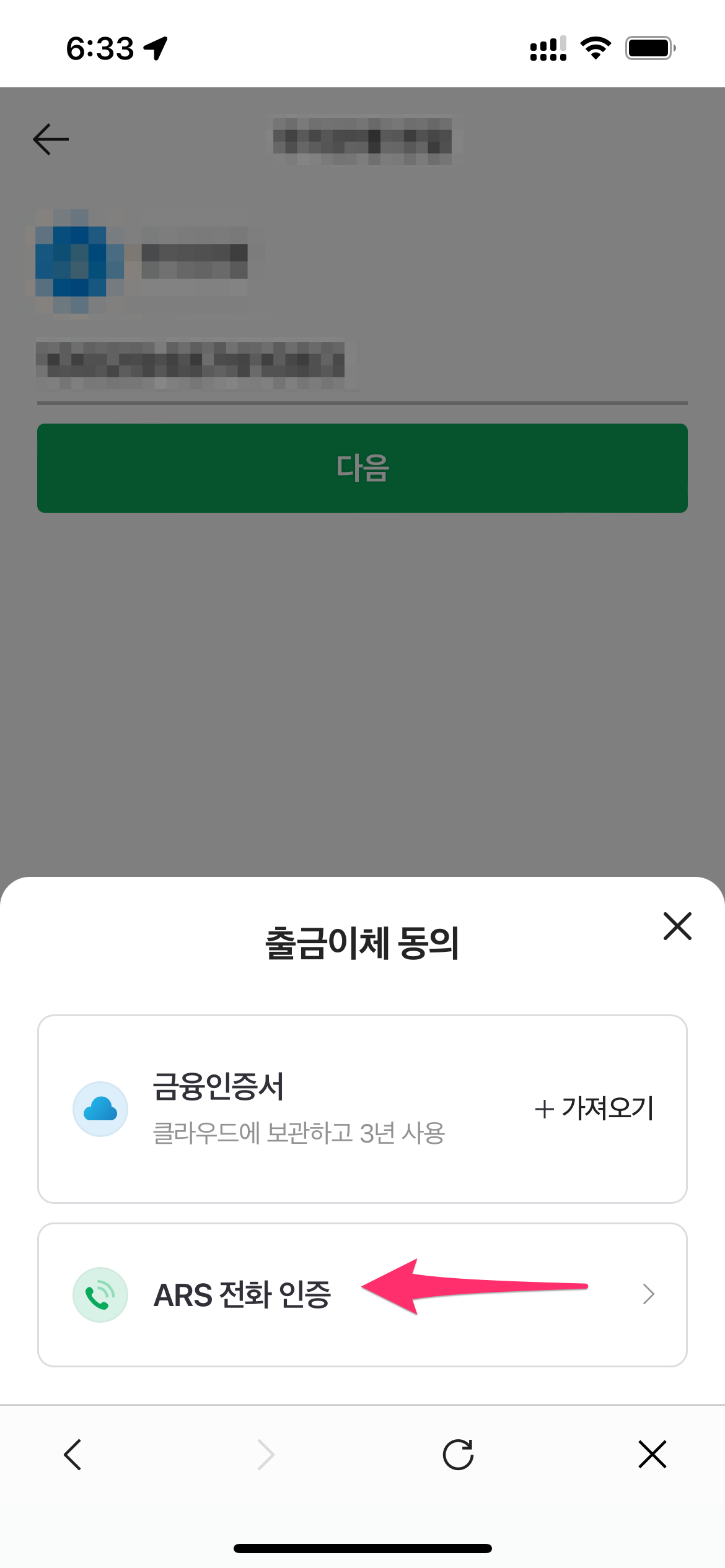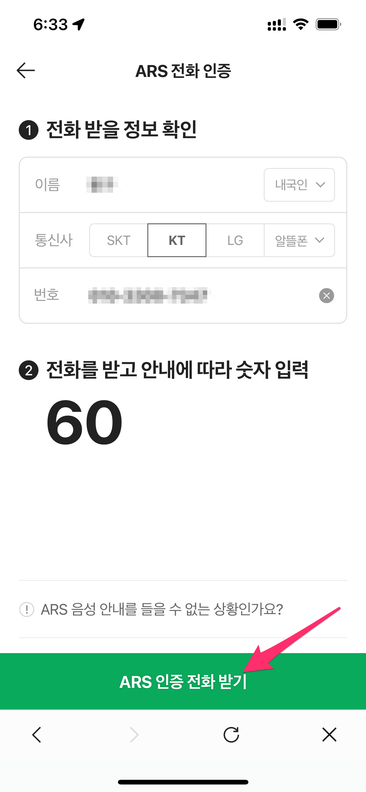 저는 ARS 전화 인증을 선택했습니다.