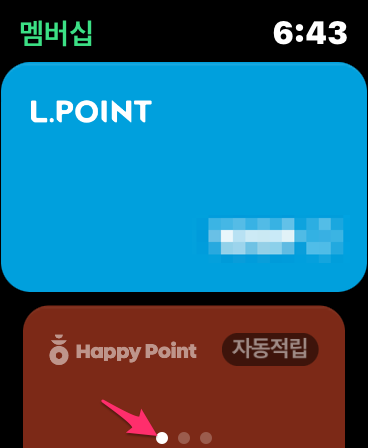 그리고 애플워치에서 네이버 페이앱 화면에서 왼쪽으로 가면 다른 멤버십 연동(아이폰 네이버 페이앱에서 추가)도 가능합니다.
