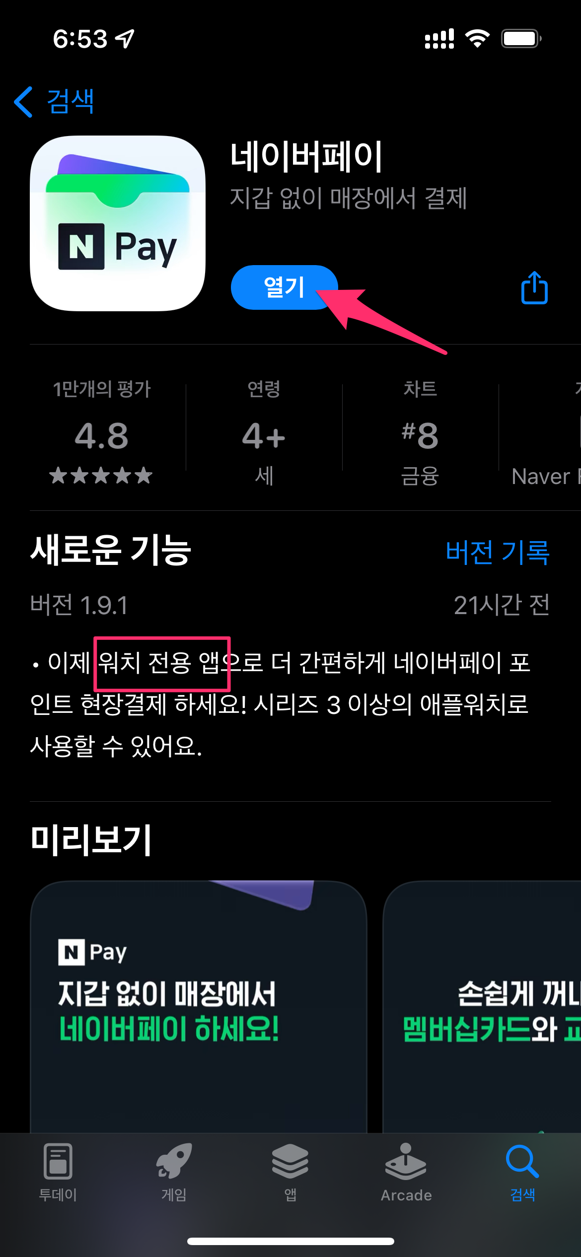 네이버페이가 애플워치 전용 앱 서비스가 시작되었습니다.
