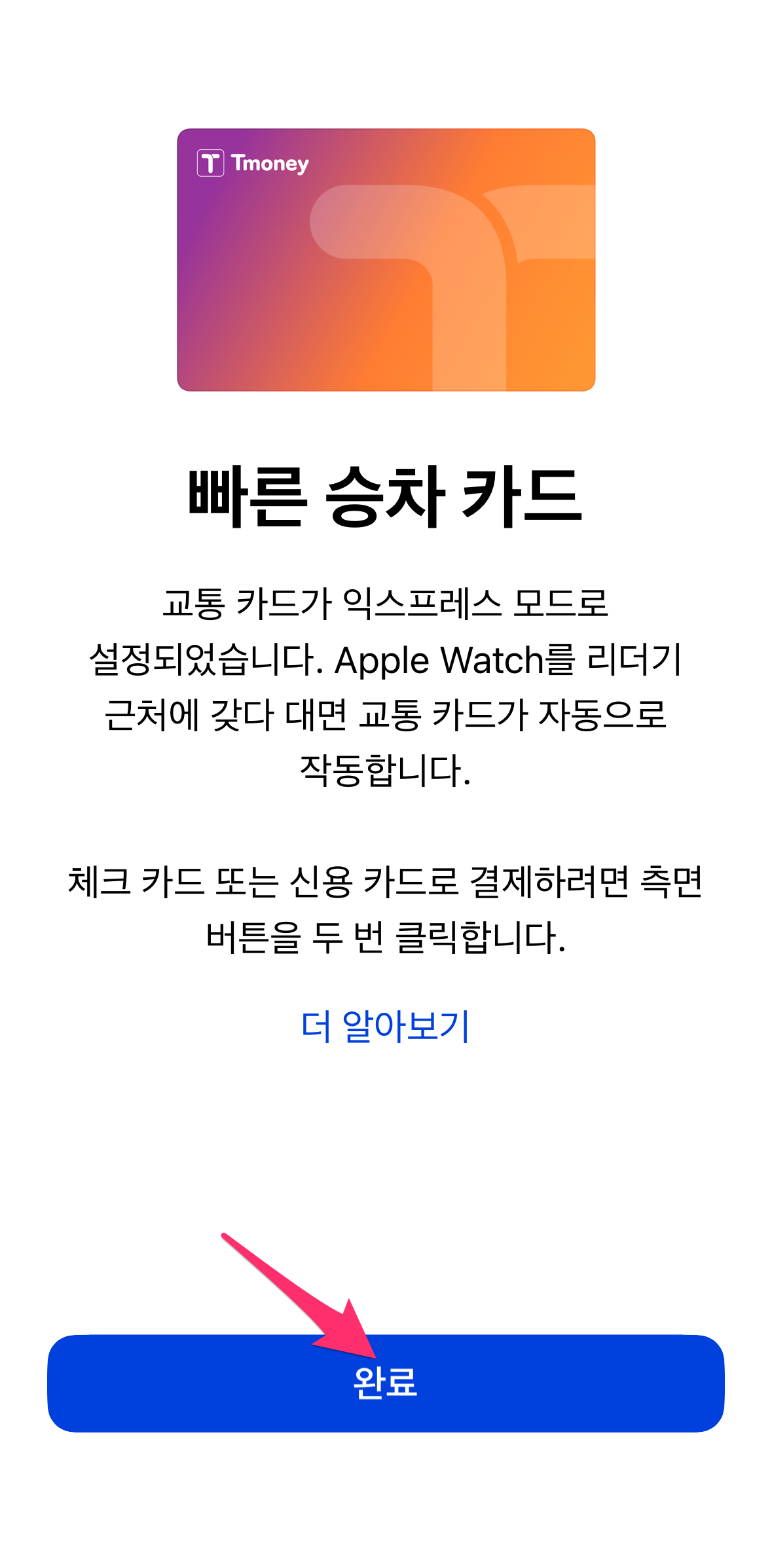 Apple Watch를 선택하면 티머니 카드가 추가됩니다.
