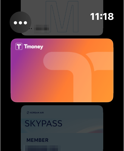애플워치에서 이렇게 알림 메시지가 나오고 애플워치 지갑앱을 열면 티머니 카드를 확인할 수 있습니다.