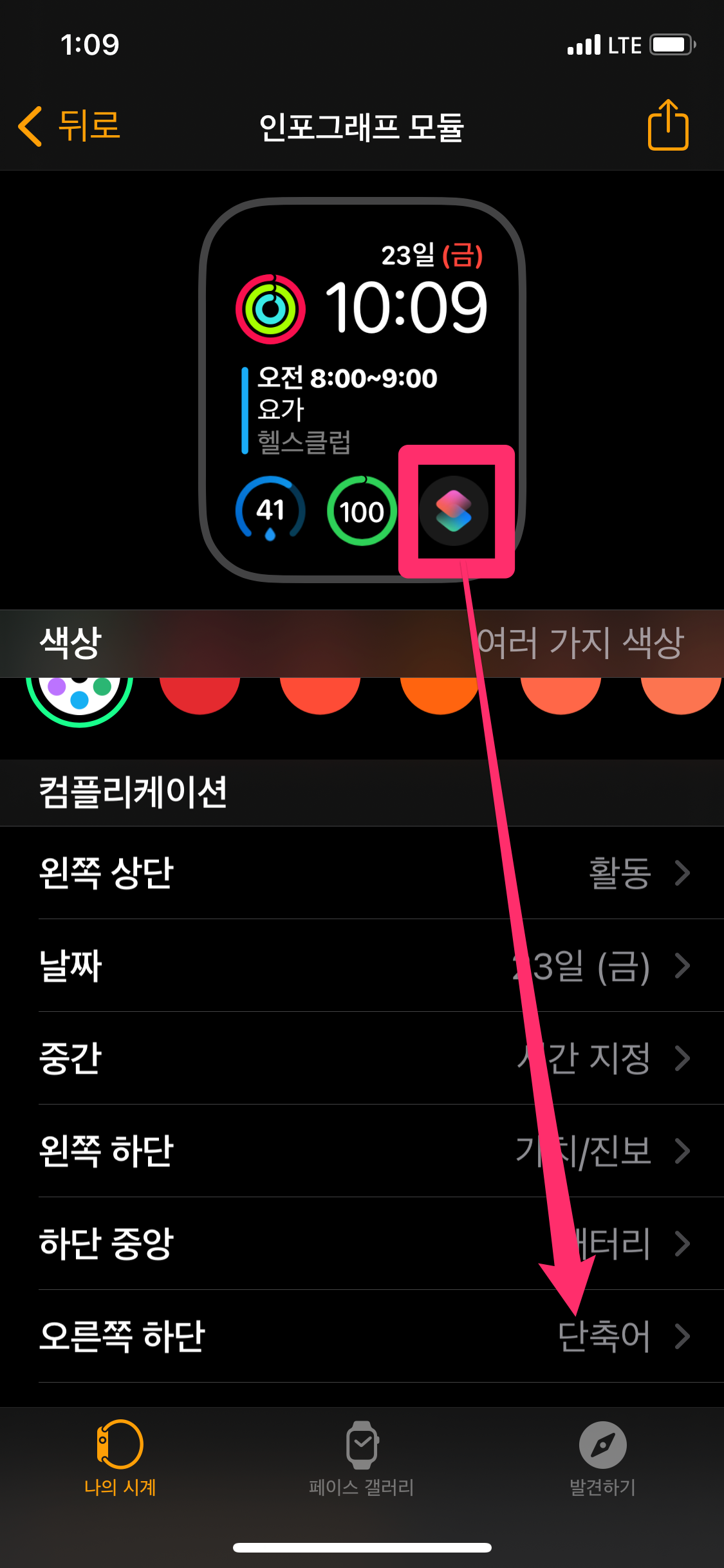 그래서 단축어를 이용하여 애플워치 페이스에서 바로 실행할 수 있는 방법을 간단하게 알려드리겠습니다.