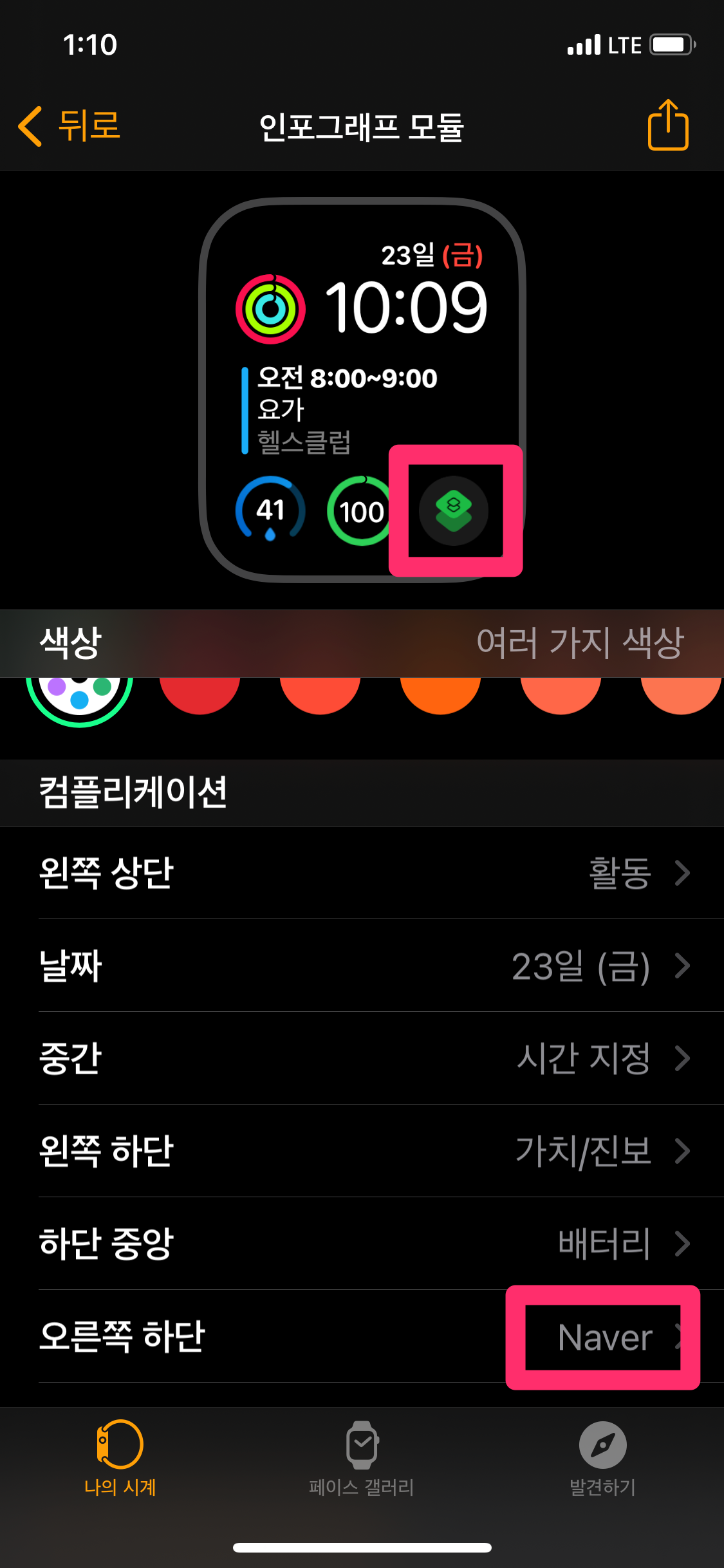 그런데 후반부에는 네이버 앱을 애플워치 페이스에서 컴플리케이션을 바로 등록할 수 있는 방법을 소개했지만 어느 분이 컴플리케이션 목록에서 Naver 앱이 안 보인다고 해서 확인해 보니 안 보입니다(ㅜㅜ;)