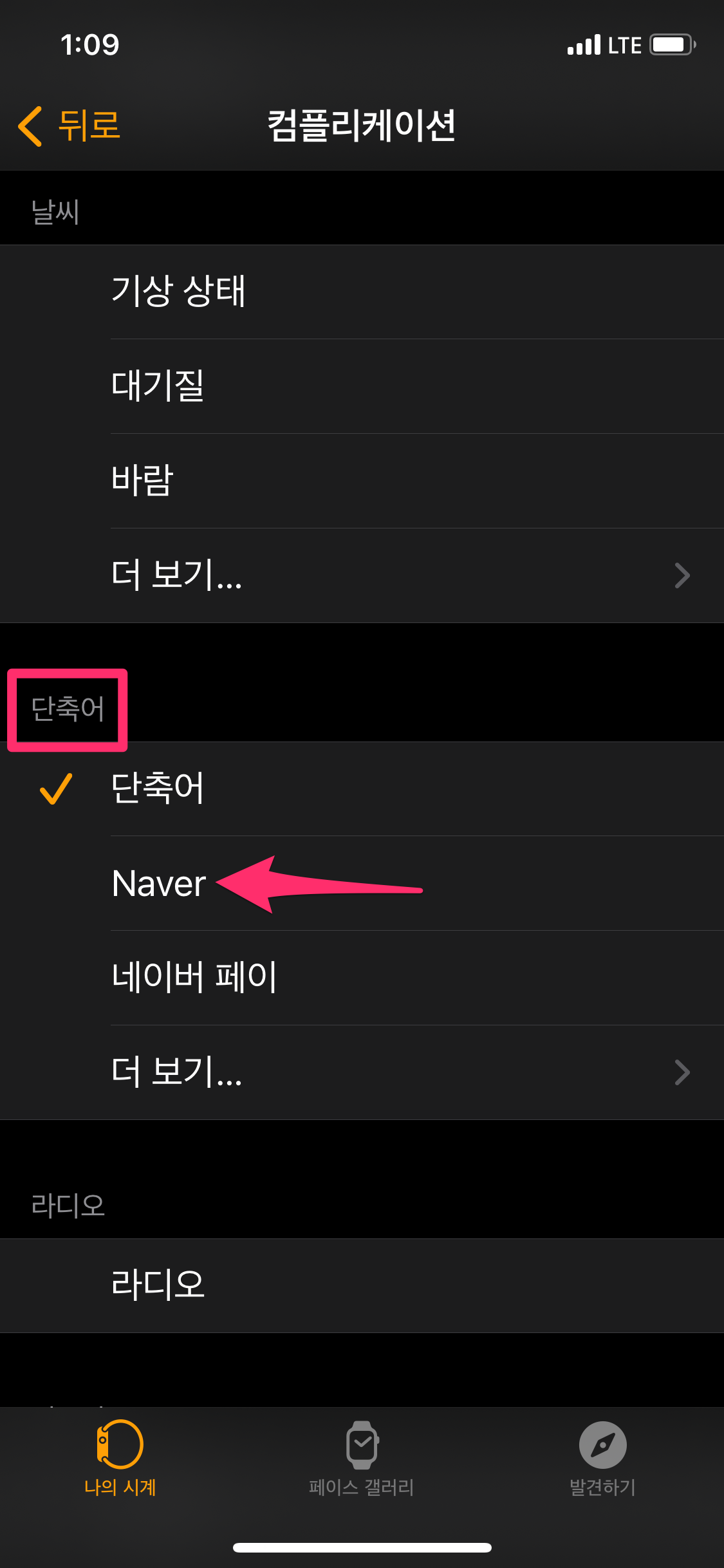 그런데 후반부에는 네이버 앱을 애플워치 페이스에서 컴플리케이션을 바로 등록할 수 있는 방법을 소개했지만 어느 분이 컴플리케이션 목록에서 Naver 앱이 안 보인다고 해서 확인해 보니 안 보입니다(ㅜㅜ;)