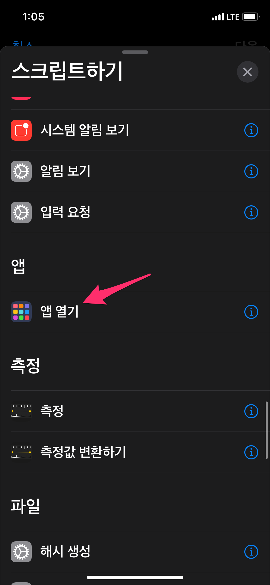 스크립트 목록에서 앱 열기를 선택합니다.