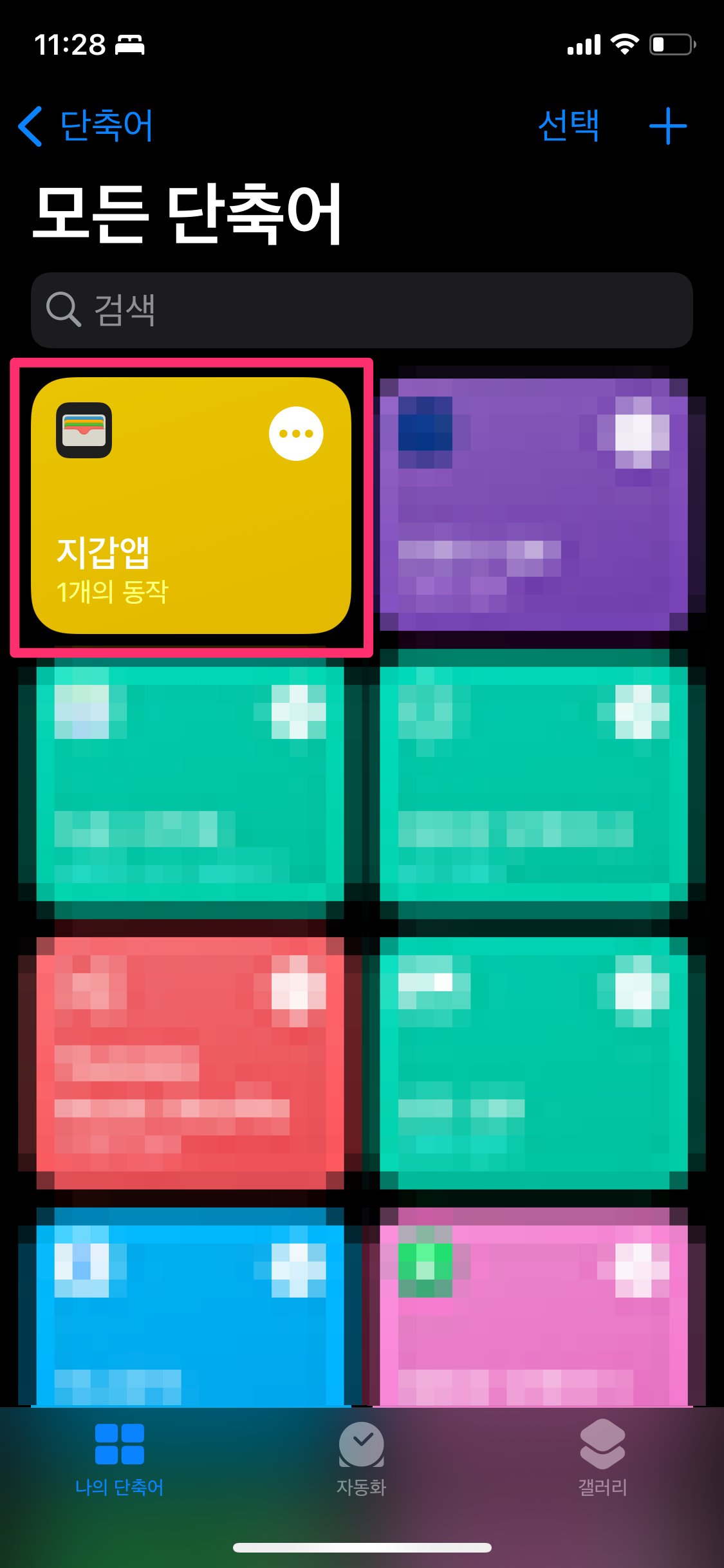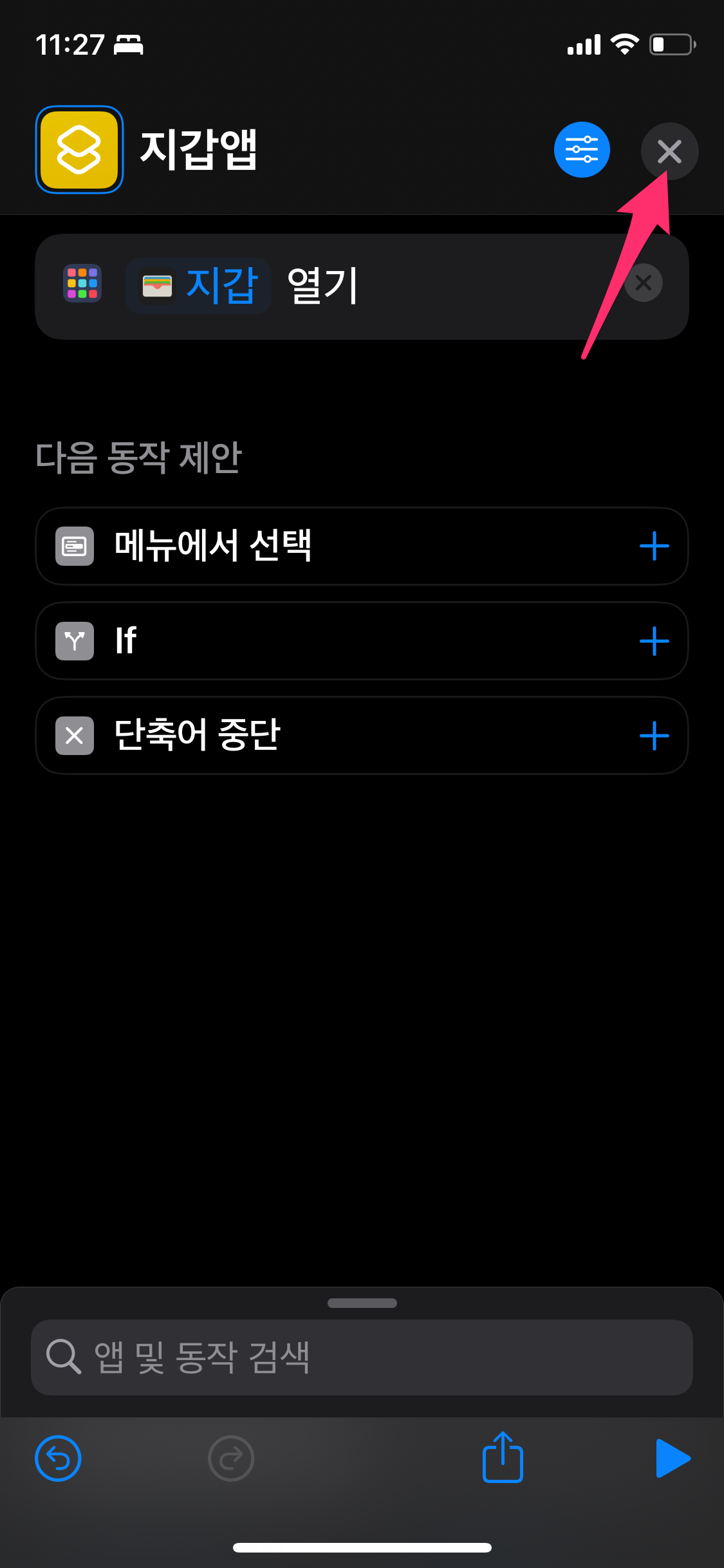 등록을 마친 후에 오른쪽 상단에 x 표시를 선택하면 추가된 지갑앱 단축어를 확인할 수 있습니다.