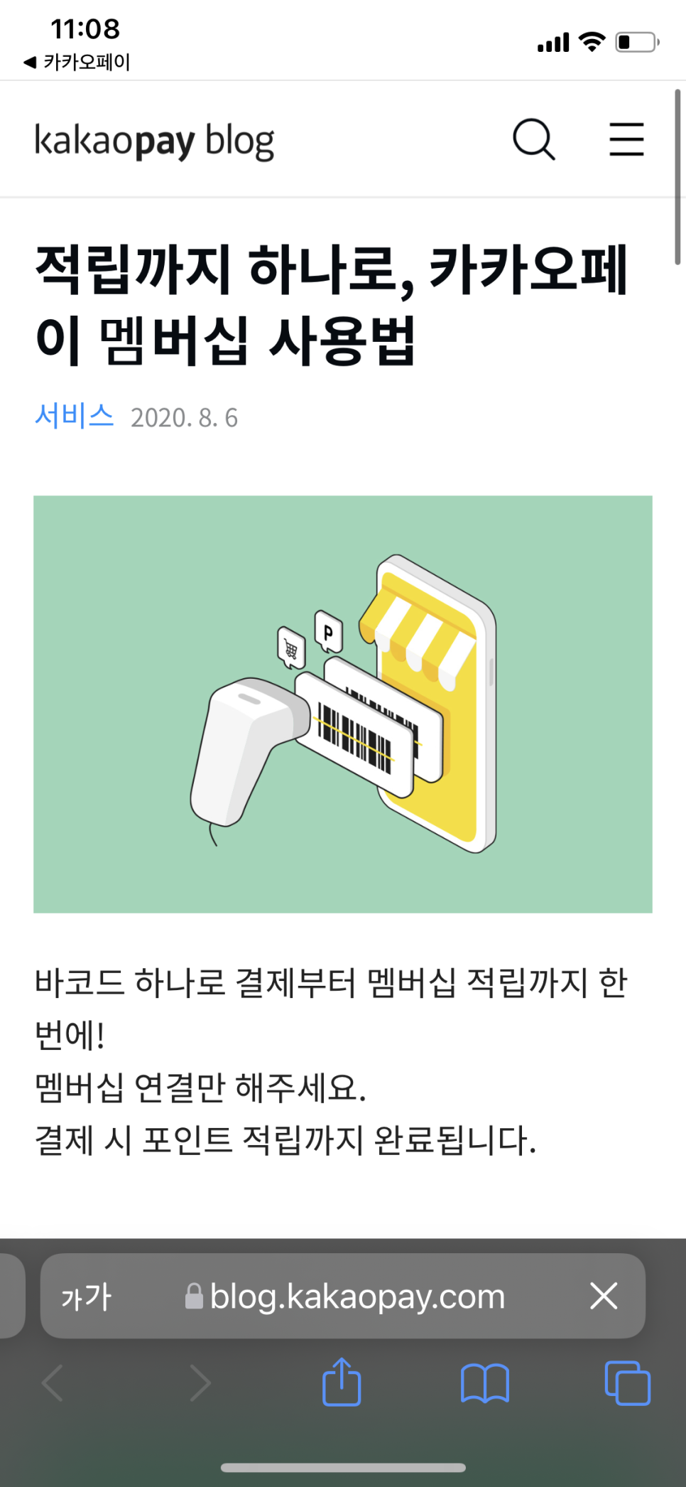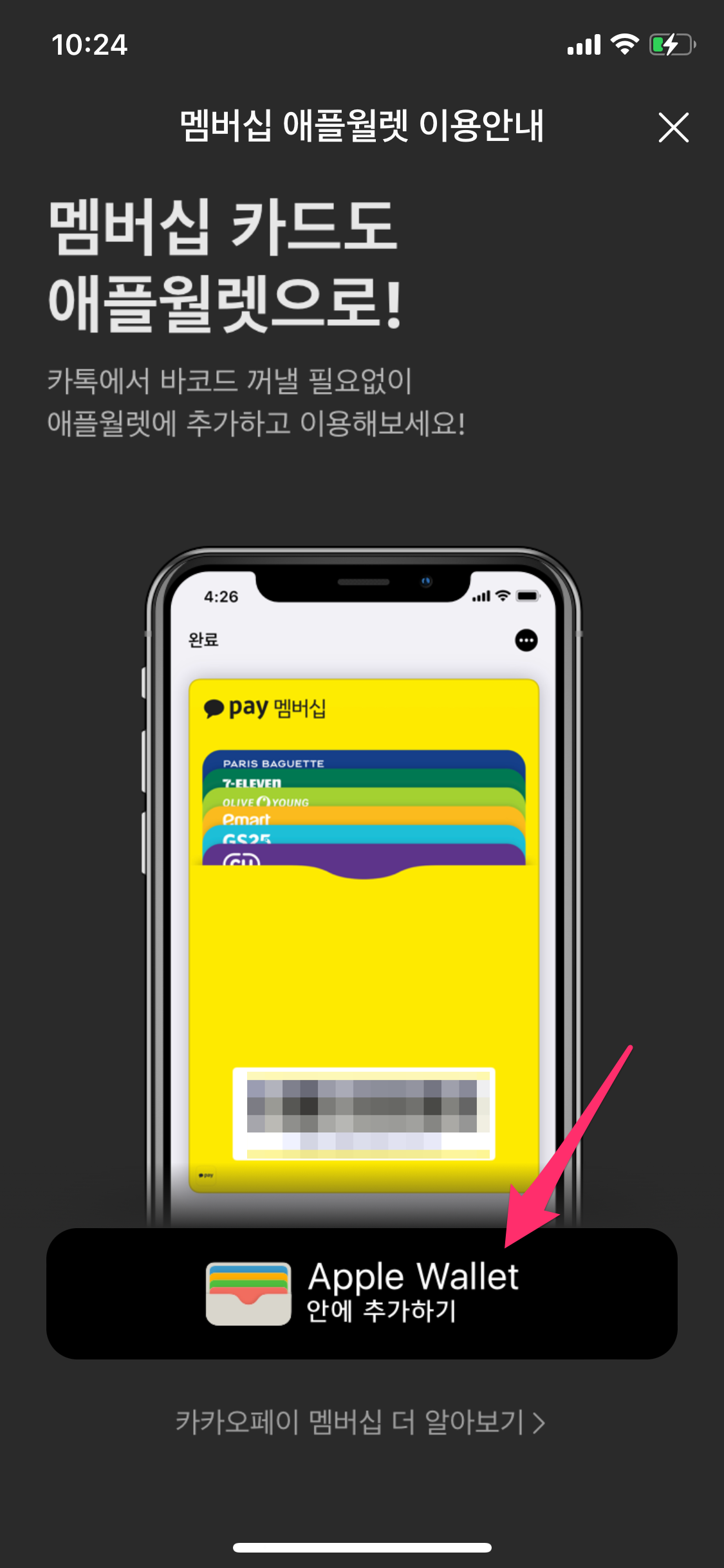 그런데 얼마 전에 카카오페이 멤버십을 아이폰 지갑앱에 넣을 수 있다고 해서 한번 장착해 봤습니다.