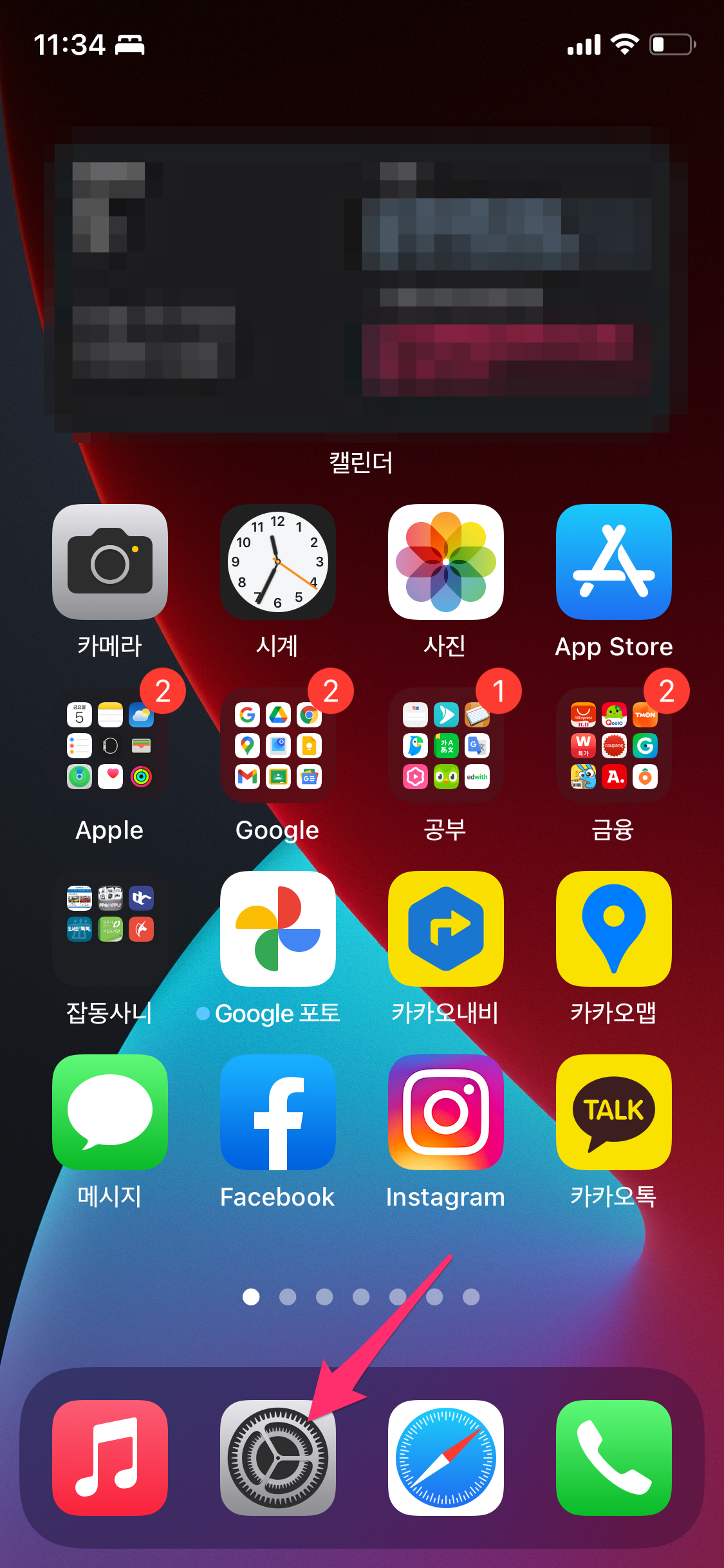 설정으로 들어가서 손쉬운 사용을 선택합니다.