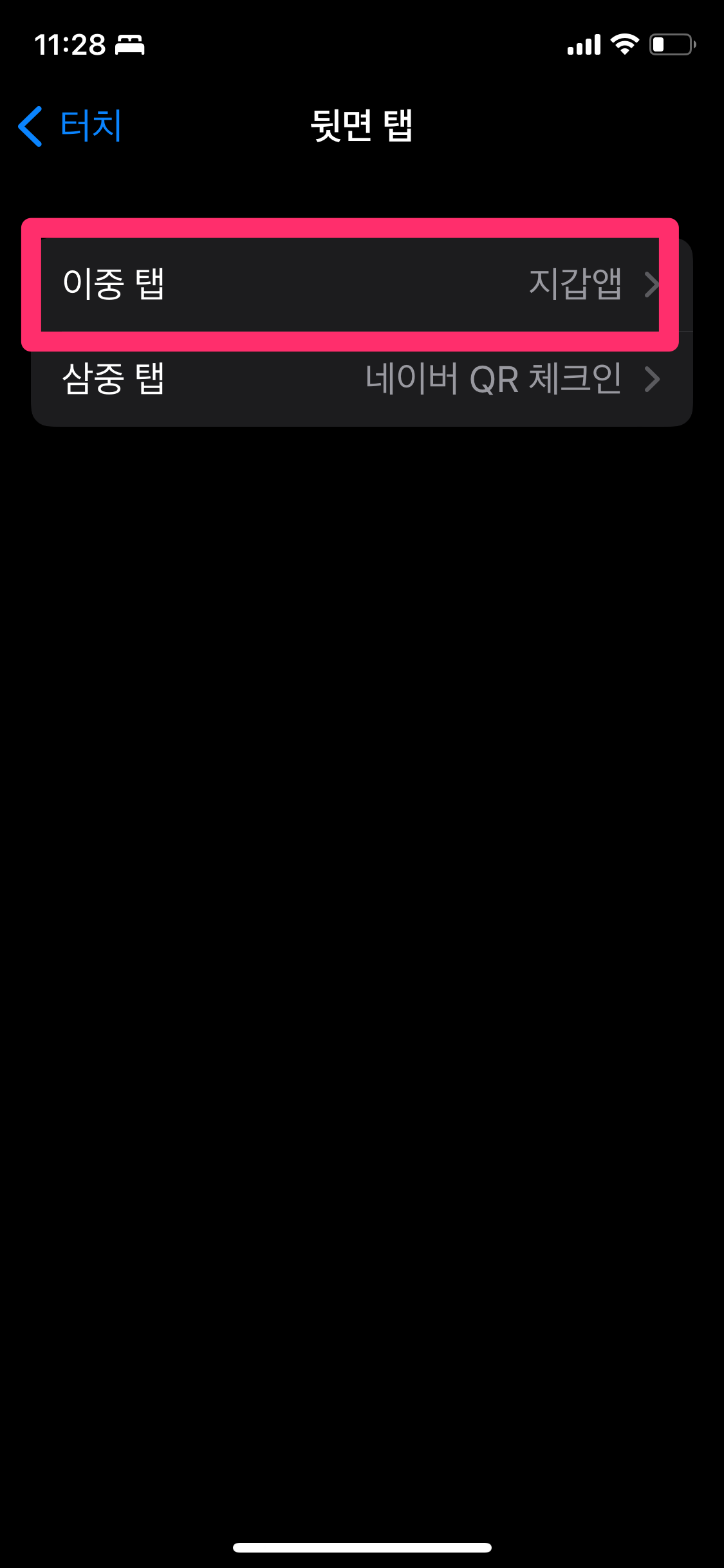 이제 뒷면에 손가락으로 이중 탭을 하면 편하게 지갑앱을 쉽게 실행합니다.