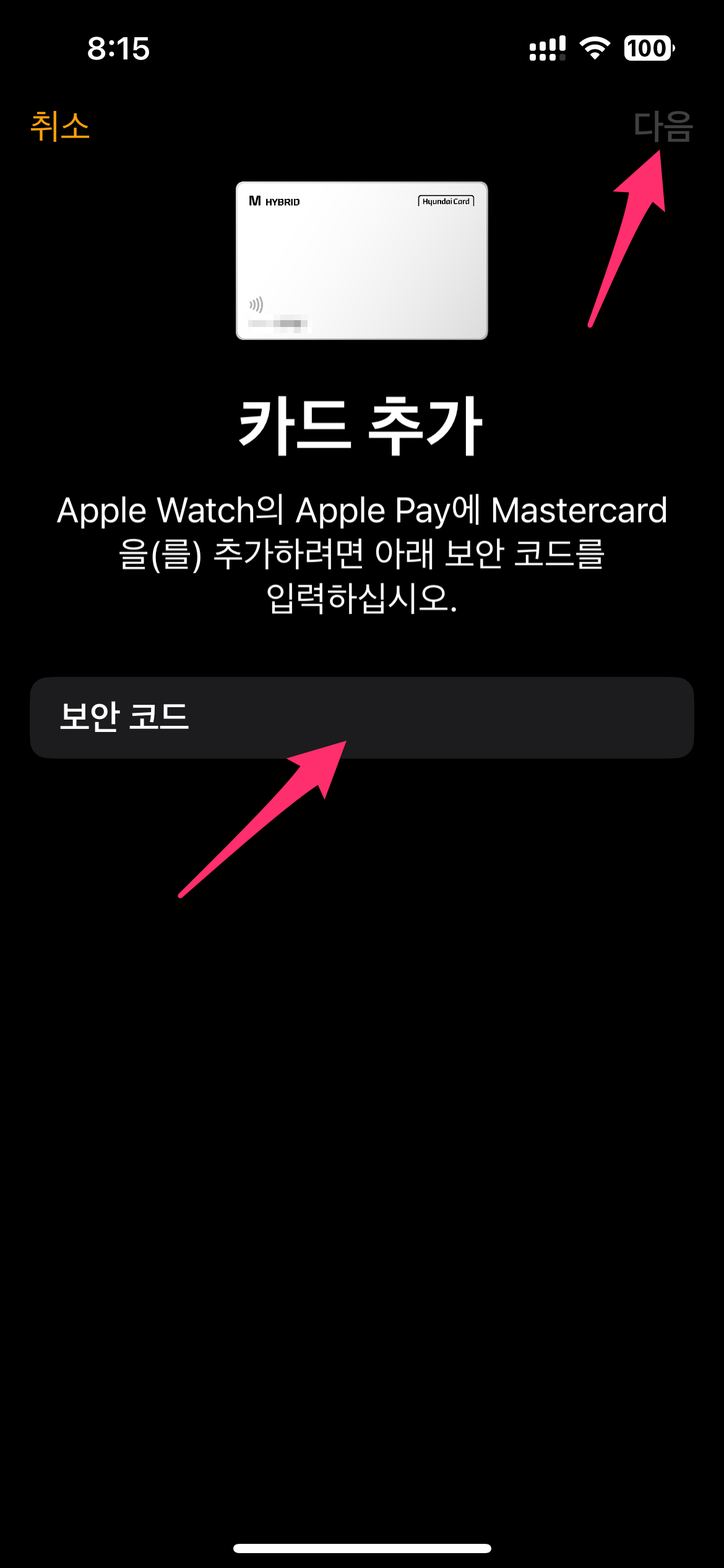 카드 확인을 한 후에 다음을 선택하면 카드 추가가 완료됩니다.