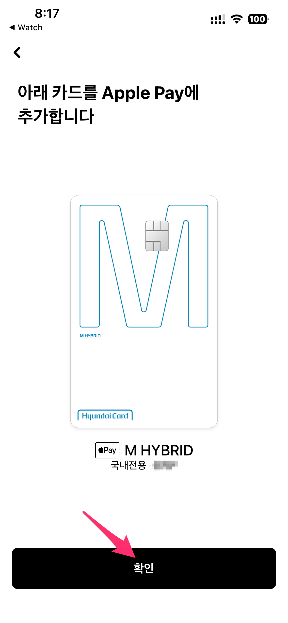 저는 M HYBRID를 선택하고 하단에 Apple 지갑에 추가 버튼을 선택합니다.