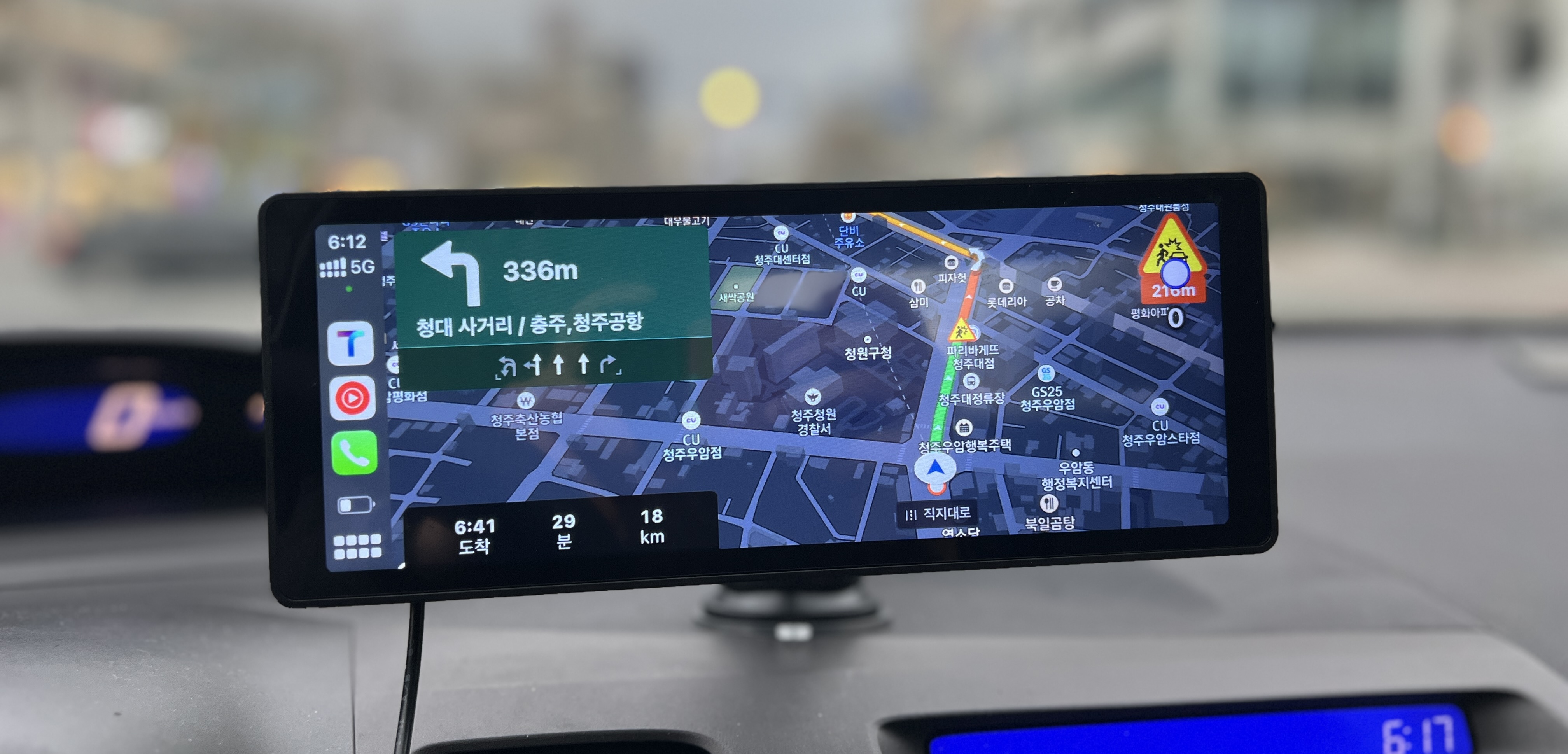그리고 시동이 걸리면 모니터 화면이 나오고 바로 카플레이가 시작합니다.